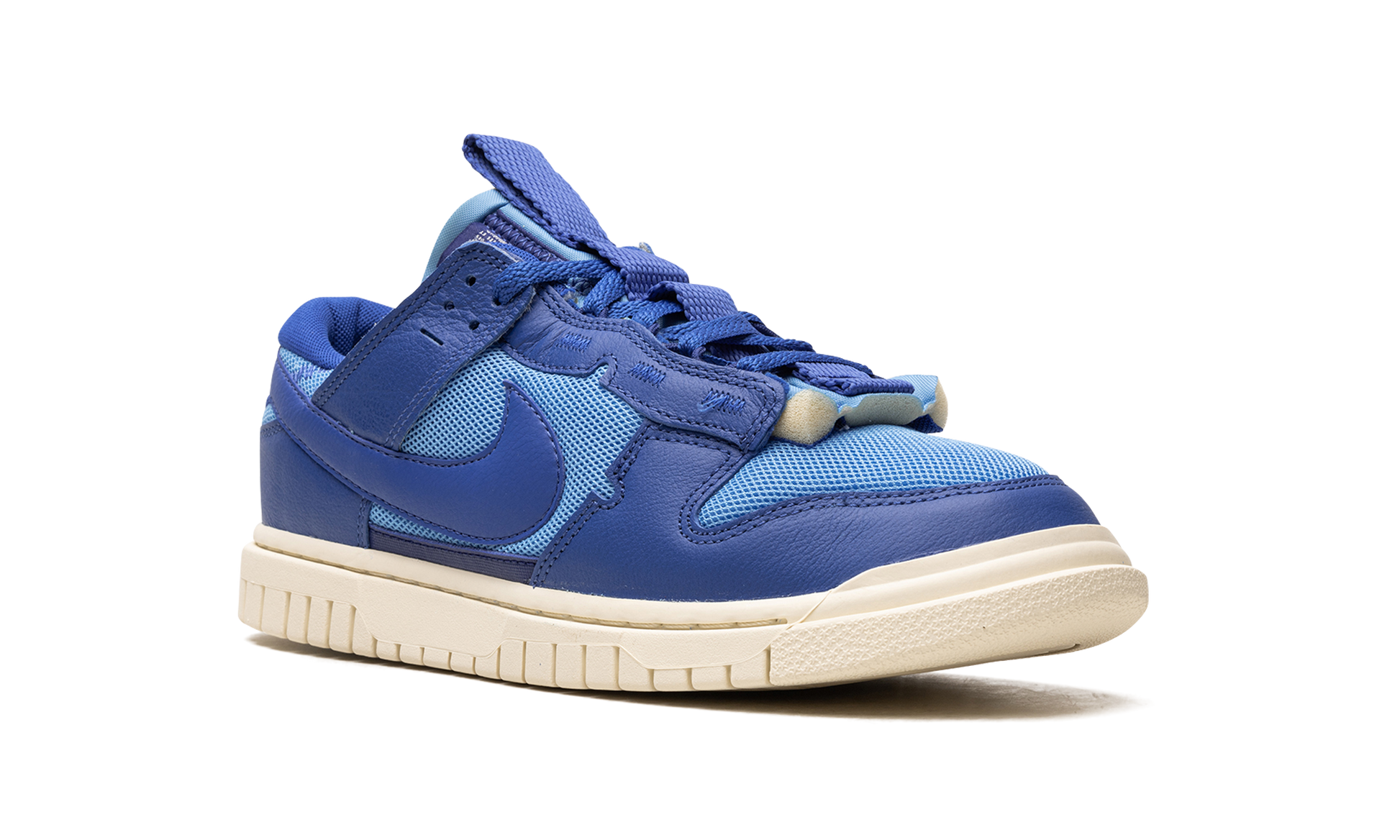 The Nike Air Dunk Jumbo “University Blue” is a modern version of the vintage basketball shoe with a progressive design. The Air Dunk Jumbo in “University Blue” features a University Blue mesh construction with Deep Royal Blue leather overlays and leather Swoosh branding. Exposed foam is seen along the thick padded tongue, giving the shoe an unfinished, deconstructed look. An inverted “Nike” logo appears on the side of the tongue. An oversized blue nylon pull tab is found on the tongue. Underfoot, a Coconut Milk rubber midsole and outsole round out the shoe’s unique look. Release date: March 14, 2023 University Blue