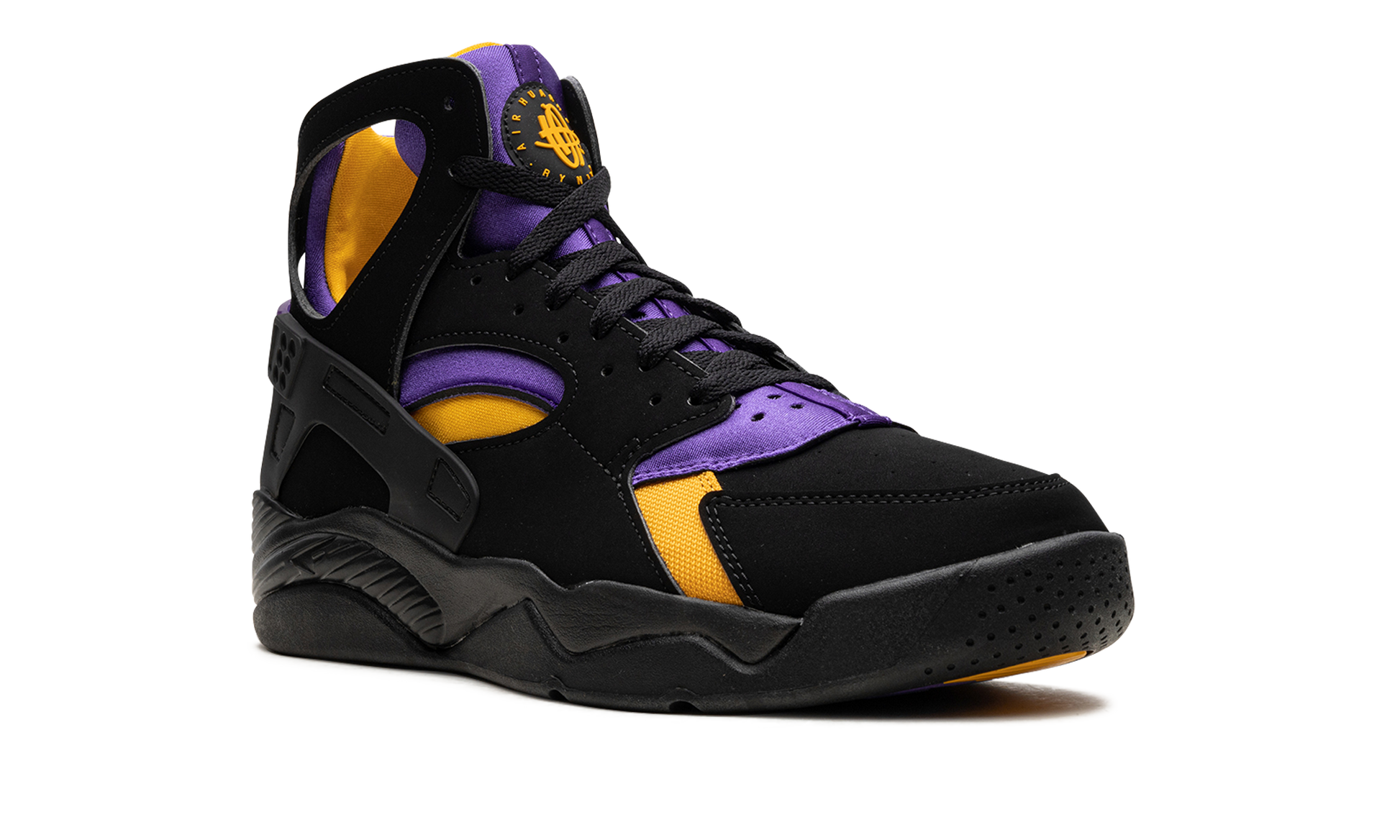 The Nike Air Flight Huarache "Lakers Away" is a colorway of the retro basketball shoe that was originally worn by Kobe Bryant before the Basketball Hall of Famer officially signed with Nike. After ending his contract with adidas in the early 2000s, Bryant was an unsigned free agent during the 2002-03 NBA season before agreeing to a shoe contract with Nike. In the time before signing with The Swoosh, Bryant wore several classic Nike basketball shoes in Los Angeles Lakers colors, including the “Lakers Away” Air Flight Huarache. The shoe was reissued by Nike as a true one-to-one remake based on Bryant’s original Player Exclusive version. The shoe has a black synthetic nubuck construction with a Varsity Purple and Del Sol neoprene inner bootie. A black molded heel cage provides stability for the wearer’s foot. “Nike Air Huarache” branding is found on the tongue. A black foam midsole completes the look of this legendary basketball shoe. Release date: August 10, 2023 Lakers Away