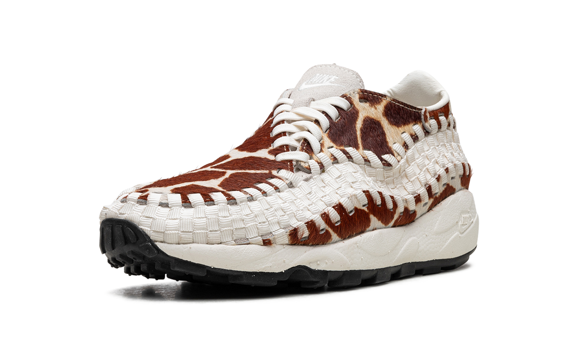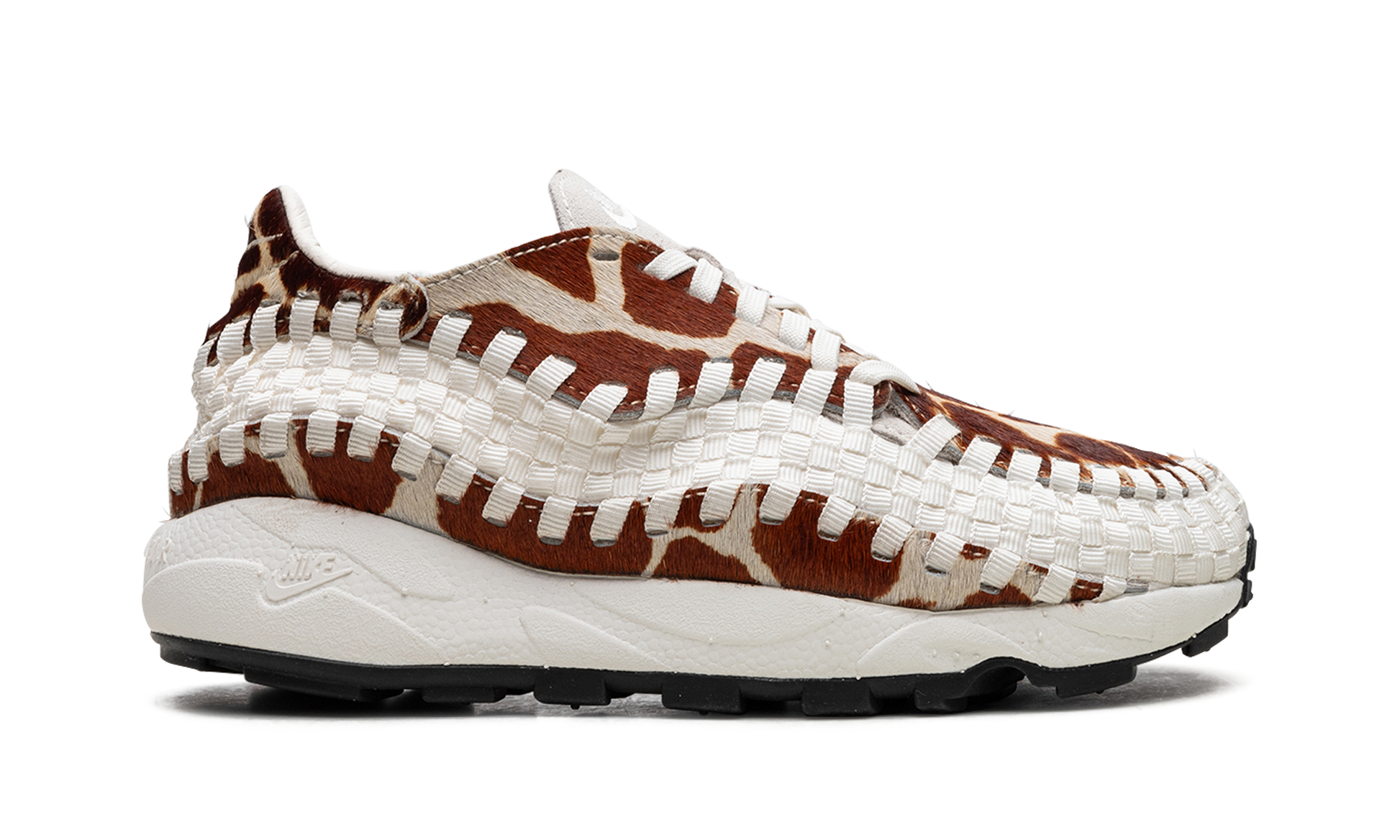 The Women’s Nike Air Footscape Woven "Cow Print" is a women’s-exclusive colorway of the hybrid sneaker that combines design cues from the Nike Air Footscape and Nike Air Woven. The “Cow Print” colorway of the Air Footscape Woven only draws more attention to the head-turning shoe, as it features a brown and white faux fur print on its upper inspired by the fur patterns seen on cows. The asymmetrical lacing system has off-white-colored laces to match the weave found throughout the shoe. Classic “Nike” branding appears on the tongue. Underfoot, an off-white midsole and black rubber outsole complete the bold look. Cow Print