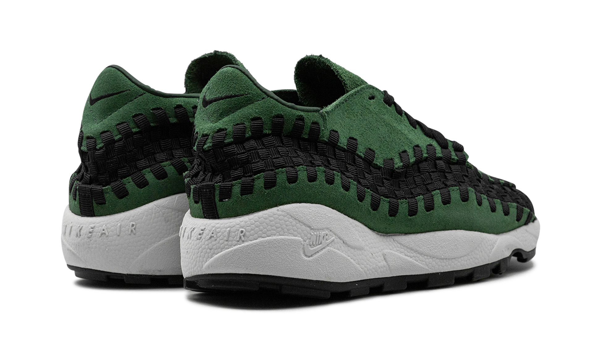 The Women’s Nike Air Footscape Woven “Fir” is a women’s-exclusive colorway of the sneaker that combines elements from the Nike Air Footscape and Nike Air Woven with green details. The Air Footscape Woven is an attention-grabbing shoe, as it features a unique asymmetrical lacing system. The upper has a Fir, or green-colored suede construction with a black woven laces to match the weave found throughout the shoe. Classic “Nike” branding appears on the tongue. Underfoot, a white midsole and black rubber outsole complete the bold design. Fir