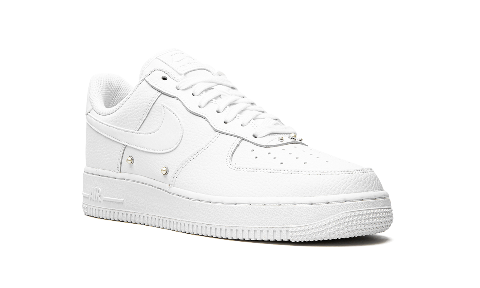 The Women’s Nike Air Force 1 Low “Pearls” is the women’s sizing of the retro basketball shoe in a colorway with added pearl studs. The “Pearls” colorway is another popular Air Force 1 Low for women that incorporates jewelry into its design, following releases such as the Swarovski x Nike Air Force 1 from 2021. Moreover, the mostly monochromatic white design shows love to the Air Force 1’s iconic “White on White” colorway. The shoe’s entire upper is designed in crisp white leather, including the base, overlays, and the Swoosh branding found on either side. Pearl studs can be found on the mid-panel and on the eyestay. A white rubber sole completes the look. Pearls