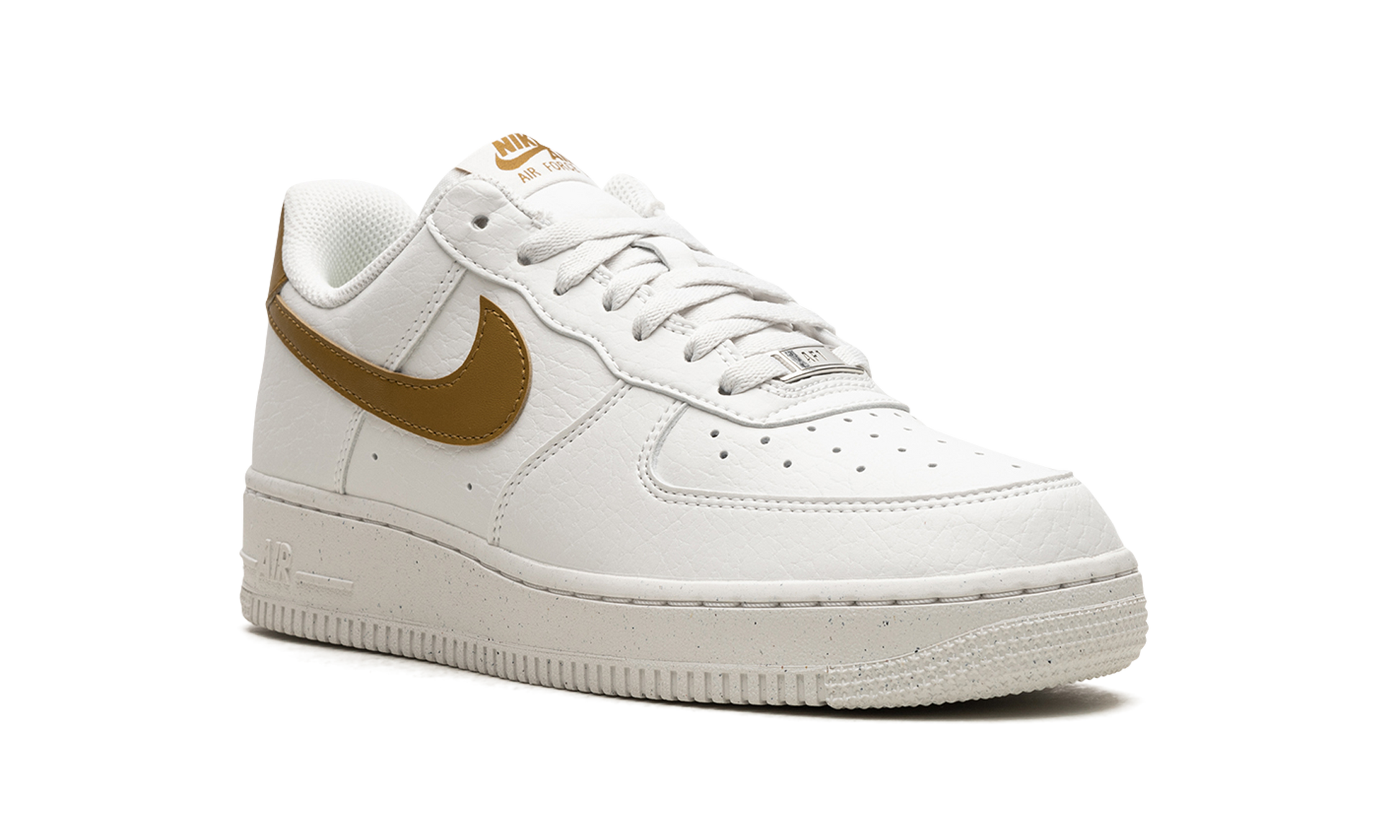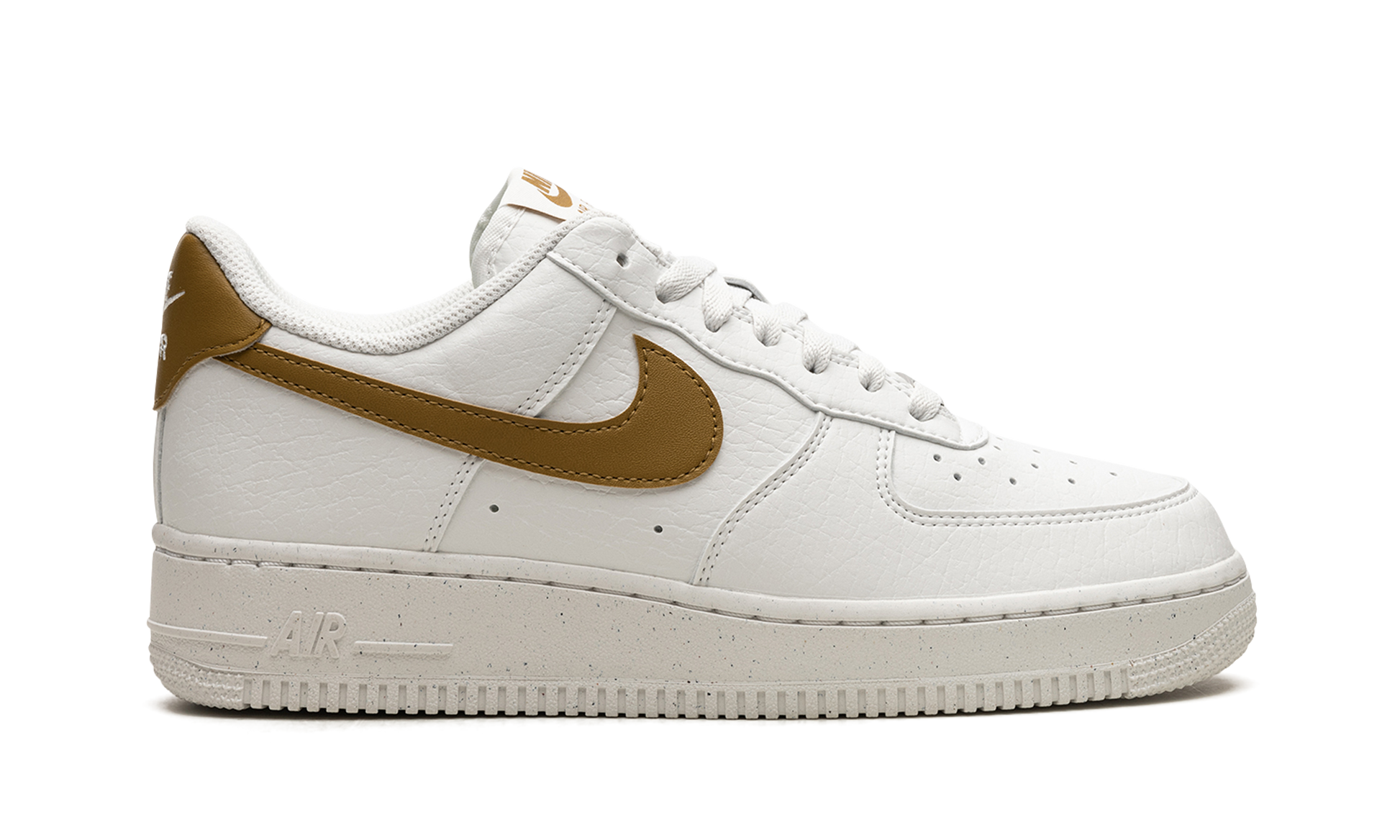 The Women’s Nike Air Force 1 Low Next Nature "Bronzine" is a women’s-exclusive colorway of the retro basketball shoe made from eco-friendly materials. Composed of at least 20% recycled content by weight, the Air Force 1 Low Next Nature is both sustainable and timeless in design. The “Bronzino” colorway has a white leather upper with tonal leather overlays and a gold, or Bronzino-colored leather Swoosh. More Bronzino detailing is featured on the leather heel tab and on the “Nike Air Force 1” branding on the tongue. Underfoot, a white rubber Nike Grind midsole made from recycled content completes the look. Release date: May 20, 2023 Bronzine