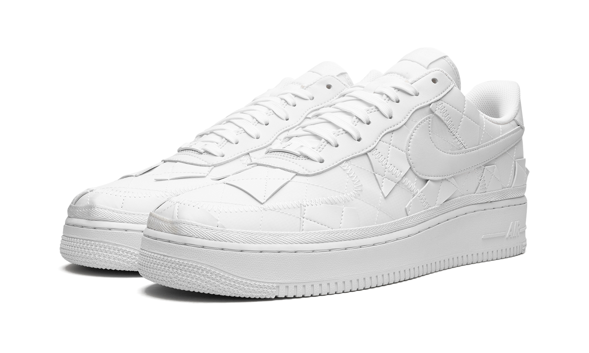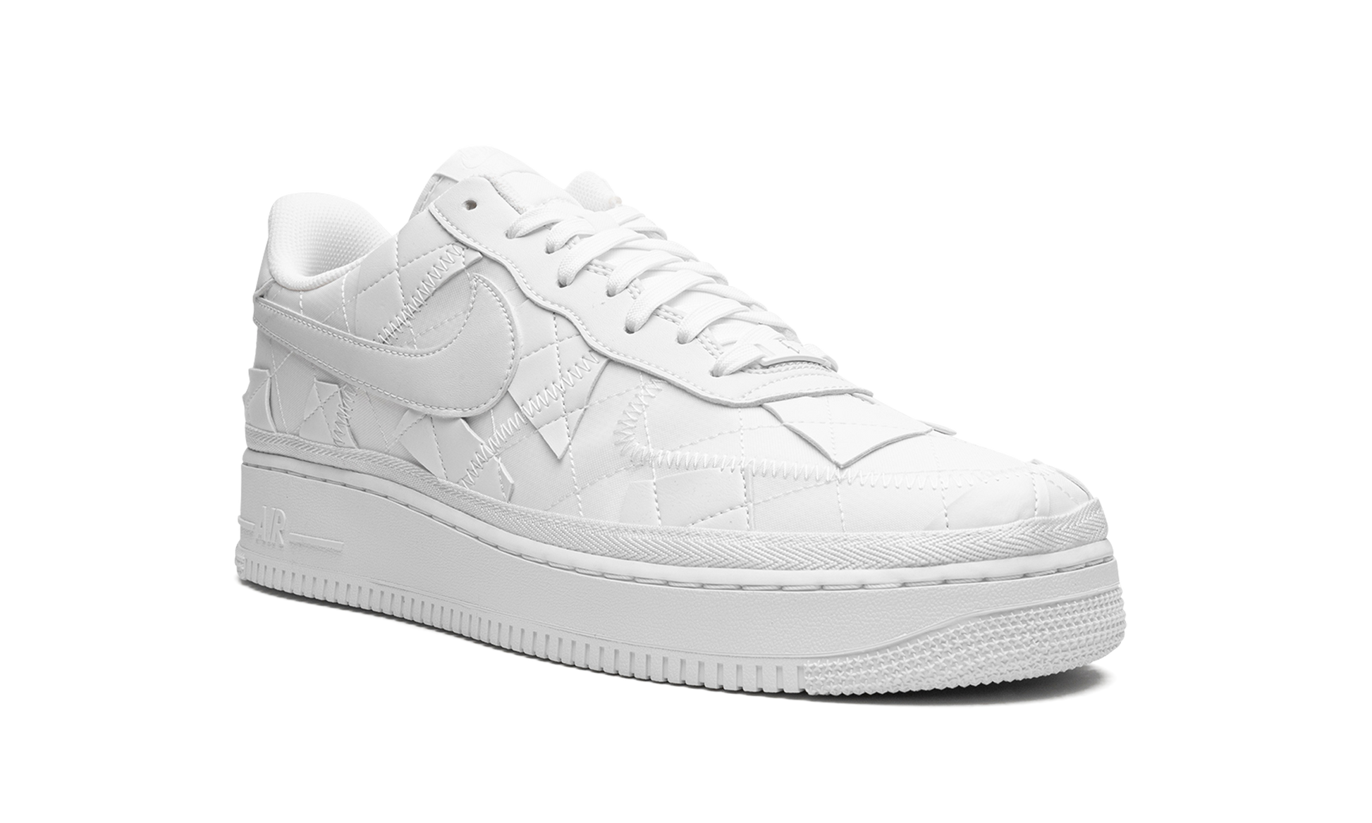 The Billie Eilish x Nike Air Force 1 Low “Triple White” is a collaboration by the Grammy Award winning recording artist on the classic sneaker with a modern design. Billie Eilish unveiled her first-ever sneaker collaboration in 2022 when she teamed up with Nike on several Air Force 1 High colorways. She followed up those projects with an Air Jordan 1 KO thereafter, and in 2023, this “Triple White’ Air Force 1 Low. The shoe at hand features an all-white quilted nylon construction with tonal fragmented patchwork overlays made from recycled materials on the sides. Eilish’s signature Blohsh character is depicted on the lace dubrae and on the tongue. Release date: March 23, 2023 Billie Ellish - Triple White