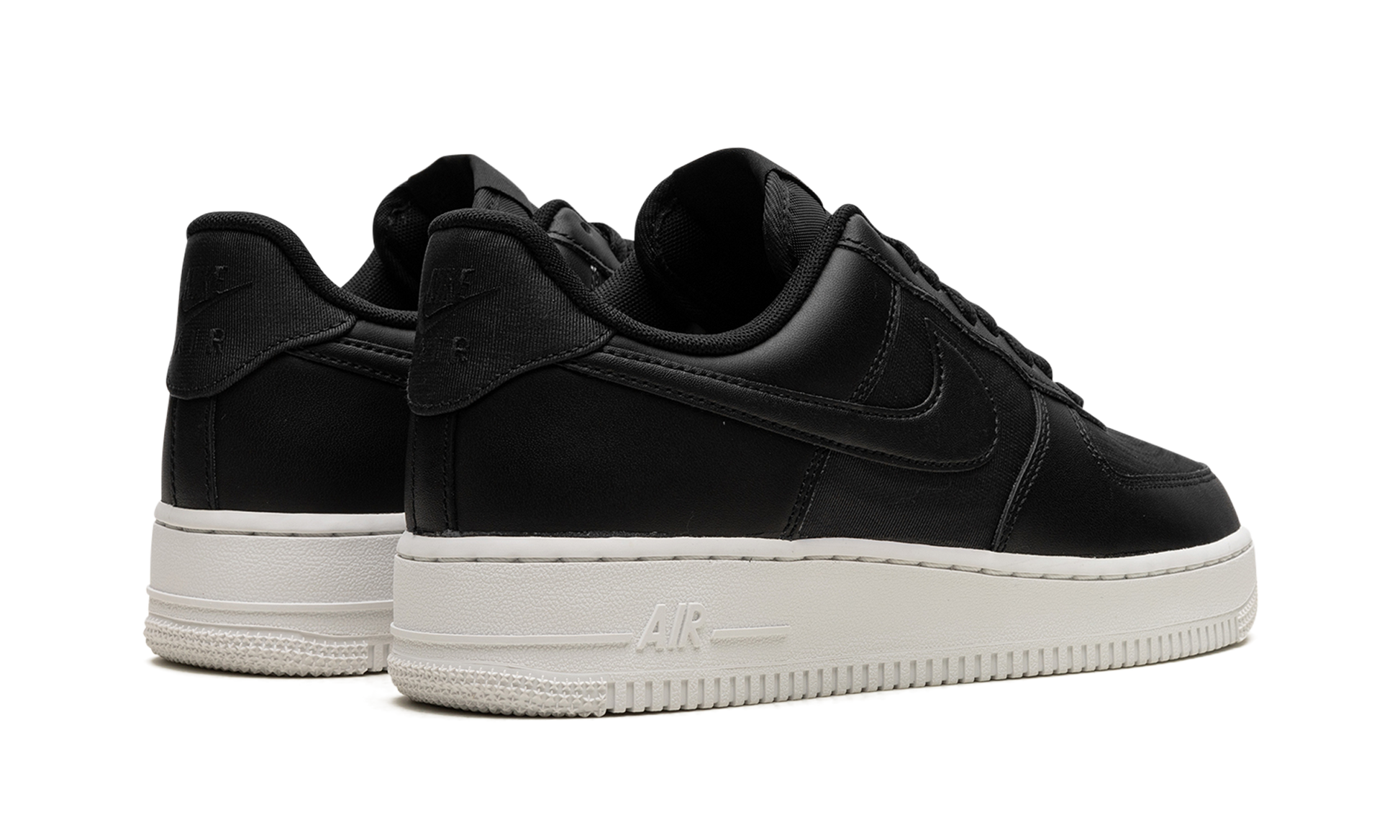 The Nike Air Force 1 Low “Nylon - Black” is a stealthy, mostly monochromatic black colorway of the classic basketball sneaker in a special nylon construction. The “Black” edition of the Air Force 1 Low Nylon features a black nylon base with tonal leather overlay panels. A black leather Swoosh logo appears on both sides of the shoe. Nike keeps the look of the shoe muted with black “Nike Air Force 1” branding on the tongue tag and black “Nike Air” detailing on the heel. The shoe is mounted on a white rubber sole. Black - Nylon