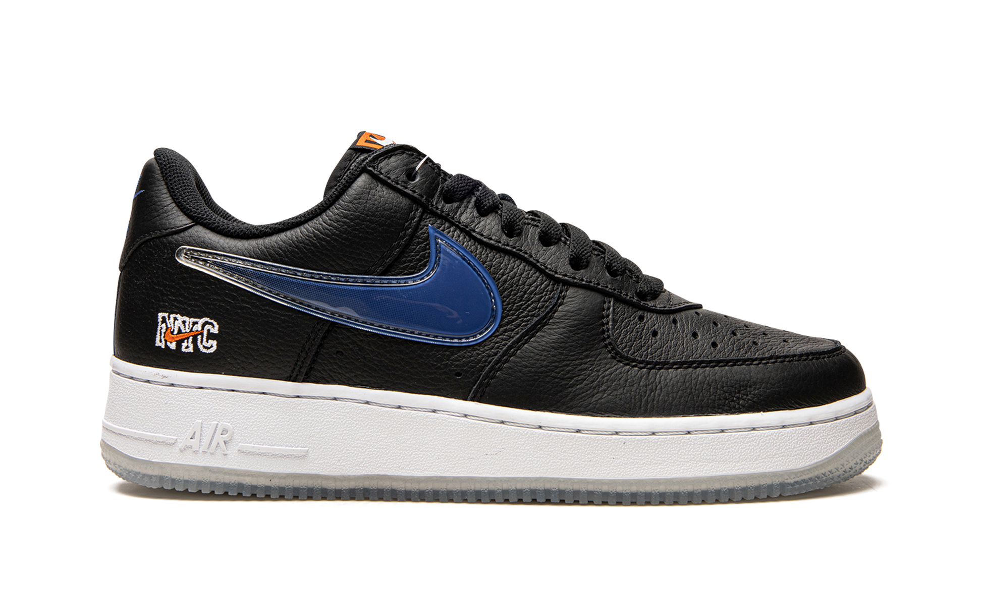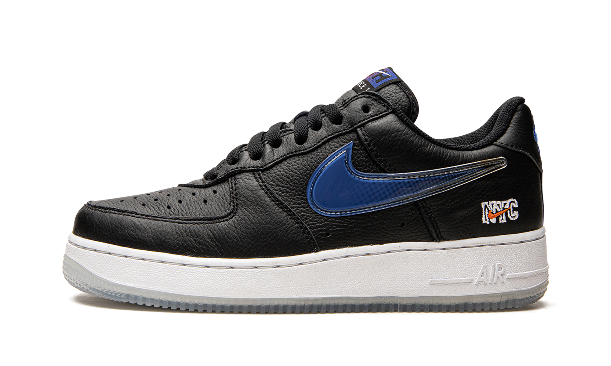 The Kith x Nike Air Force 1 Low “NYC Away” is a collaboration between Ronnie Fieg’s sneaker boutique and Nike on the vintage basketball shoe in the basketball-inspired “Home” and “Away” collection. The black based “Away” version of Kith’s Air Force 1 Low looks to the boutique’s home, New York City, and more specifically, the New York Knicks, for design inspiration, as the shoe features the team’s uniform colors on its design. The black tumbled leather upper is contrasted by a blue jeweled Swoosh on either side and old school “NYC” with an orange Swoosh branding hit on the lateral side of the heel. A “Kith Air” logo with a Swoosh is embroidered on the heel. The detailing is a play on the Air Force 1’s original “Nike Air” branding. A gradient orange-to-blue “Kith Air Force 1” insignia appears on the tongue tag. Release date: December 25, 2021 Kith - Black