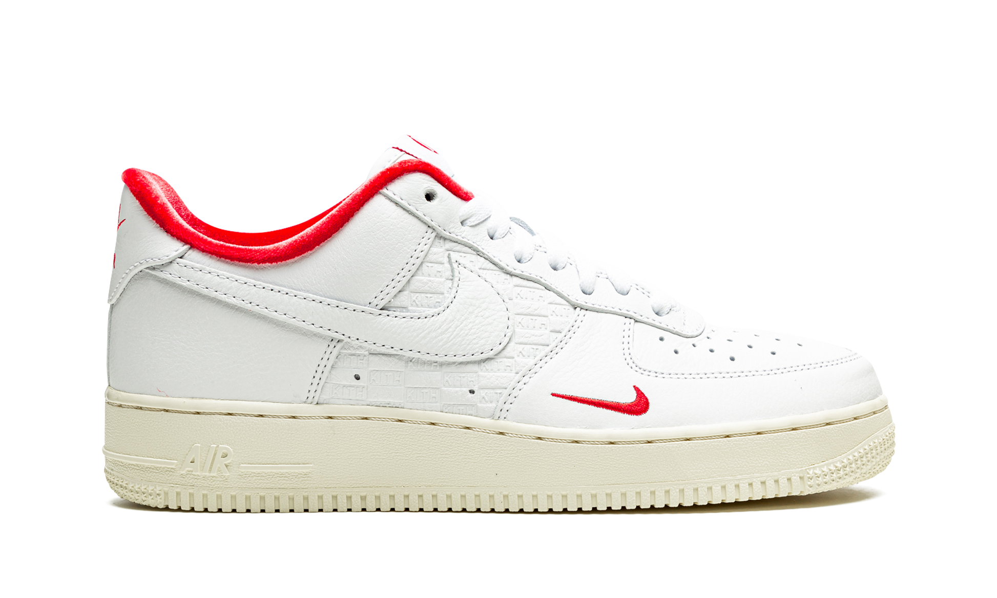 The Kith x Nike Air Force 1 Low “Tokyo” is a limited edition collaboration between Ronnie Fieg’s sneaker boutique and Nike on the vintage basketball shoe that pays homage to the Japanese flag. Keeping a mostly monochromatic white appearance, the “Tokyo” features a white leather upper with tonal “Kith” embossed monogram branding on the mid-panel. University Red accenting comes into play on the small embroidered Swoosh on the forefoot, on the interior lining, and on the unique “Kith Air” branding found on the heel. Special “Kith” detailing appears on the tongue and is inspired by the Japanese flag. The Kith x Nike Air Force 1 Low “Tokyo” was released exclusively at Kith’s Tokyo outpost in limited quantities in July 2020. Release date: July 4, 2020 Kith Tokyo