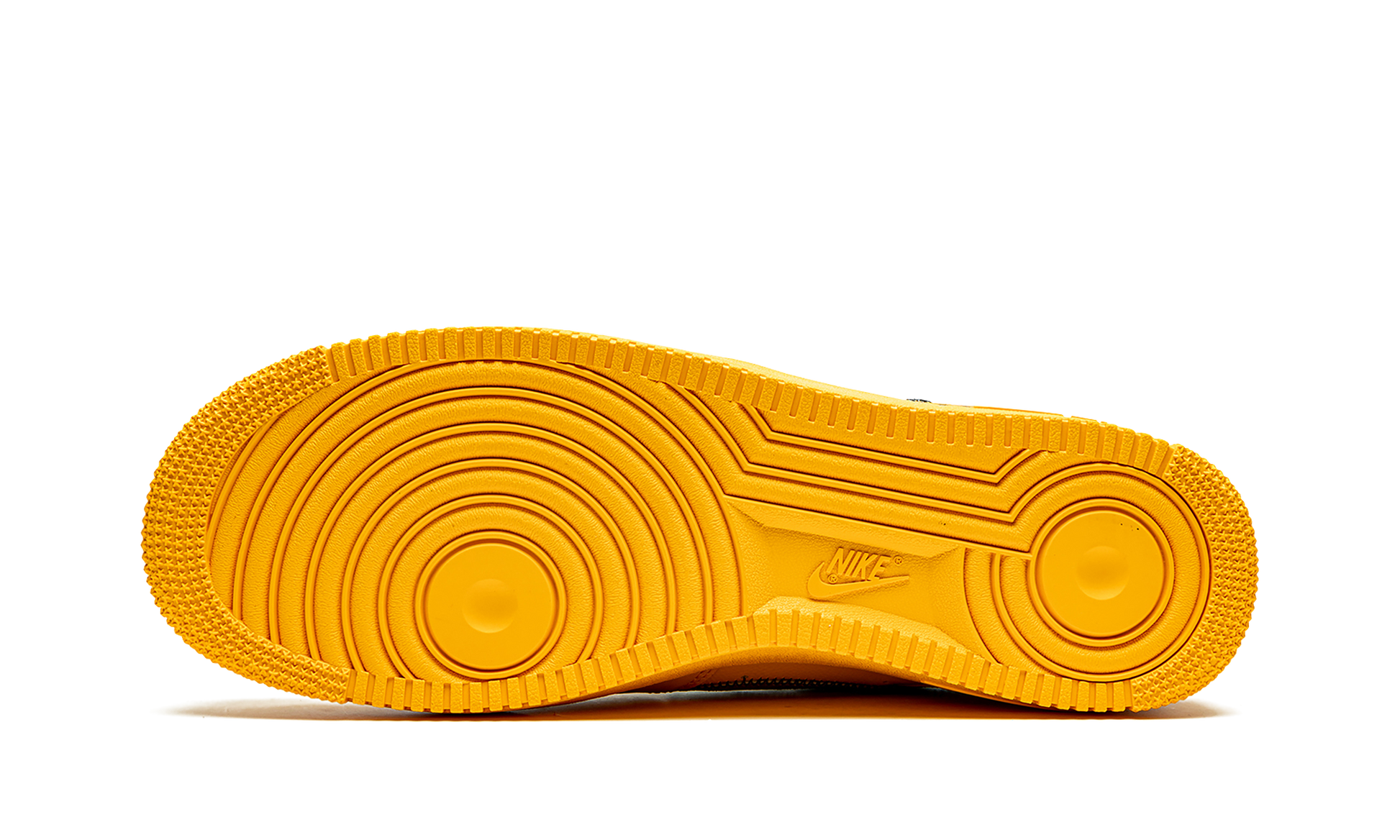 The Off-White x Nike Air Force 1 Low “University Gold” is a positively blinding colorway of Nike’s retro basketball and lifestyle shoe created in collaboration with Off-White and Virgil Abloh. Synchronizing with the opening of Abloh’s “Figures of Speech” exhibit at Boston’s Institute of Contemporary Art in Summer 2021, the Off-White-designed “University Gold” colorway features a predominately monochromatic yellow construction. The perforated toe, mid-panel, collar, and heel are all dressed in University Gold leather. Contrast stitching borders the metallic silver Swoosh logo found on either side of the shoe and tonal “Nike Air” embroidery appears on the heel. In signature Off-White fashion, the Air Force 1’s nylon tongue tag has been repositioned to the side of the University Gold nylon tongue for an abstract, “do-it-yourself” look. A yellow plastic zip-tie hangs from the tonal laces. Black “Air” text is printed above tonal “Air” branding on the lateral side of the University Gold-colored rubber midsole. Off-White - University Gold