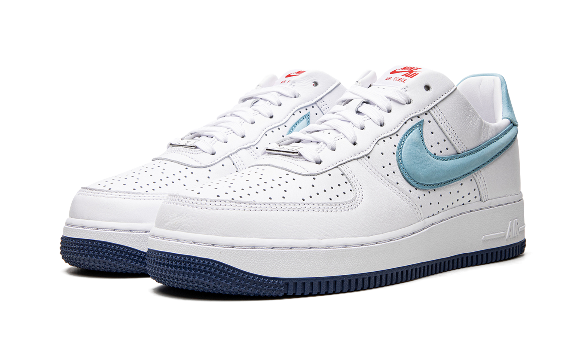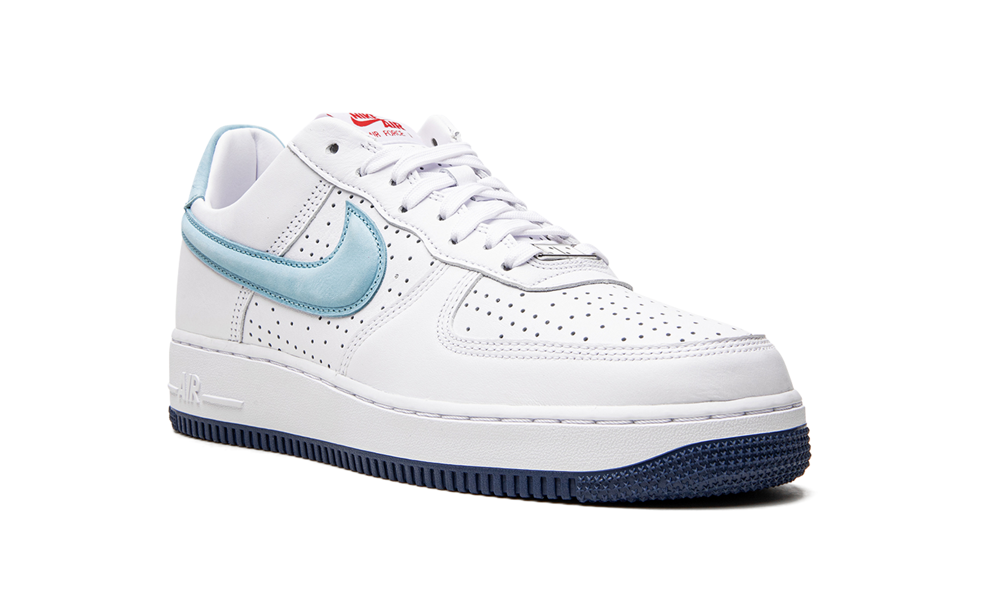 The Nike Air Force 1 Low “Puerto Rico 2022” is a special colorway of the classic sneaker that pays homage to the annual Puerto Rican Day celebration in New York City. The “Puerto Rico” theme has appeared on the Air Force 1 on several occasions over the years as well as on the Air Max 97. This 2022 release of the “Puerto Rico” AF1 features a white leather construction with perforations on the toe and mid-panel. Smooth tonal leather is found on the overlays. A Sky Blue Swoosh appears on either side of the shoe. Additional Sky Blue detailing is found on the heel tab with light blue “Nike Air” and “Puerto Rico” detailing on the left and right shoe, respectively. Overtures to Puerto Rico include graphics on the footbed, and “Puerto Rico” and dice-inspired lace dubraes. Release date: June 4, 2022 Puerto Rico 2022