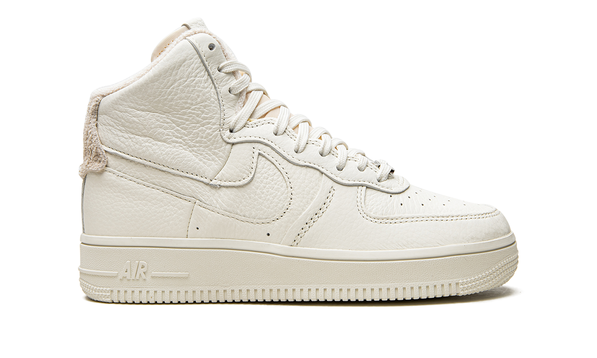 The Women’s Nike AF1 Sculpt “Sail” checks all the boxes for a unique and premium take on the Air Force 1. This shoe features soft pebbled leather on the upper with suede accents and minimal brand to give this shoe a luxurious feel. For a less bulky feel, the sneaker’s collar has been updated and the padding has also been sculpted to allow for easy on/off access. The Air Force 1 High’s usual ankle strap has been removed, and the hollowed-out Swoosh adds a unique twist to the AF1 look. Sculpt