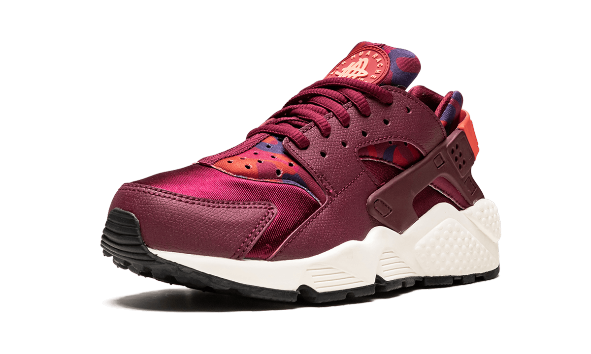 This Nike Air Huarache in women's sizes gets outfitted in a unique stylized camo print across the neoprene bootie in with a burgundy shade across the upper to match.