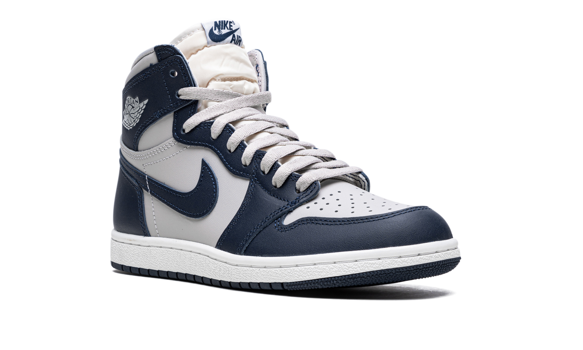 The Air Jordan 1 High ‘85 “Georgetown” is a colorway of Michael Jordan’s first signature shoe that shows appreciation to the Georgetown Hoyas, the college basketball team Jordan famously defeated to earn his first NCAA Championship in 1982. The Jordan 1 High ‘85 “Georgetown” is a near one-to-one remake of the original Air Jordan 1 High from 1985, as it features an accurate-to-original collar height and shape and panel placement, and upgraded materials. Specifically, the “Georgetown” colorway appears in the same color block as the Hoyas’ team uniforms, with Tech Grey leather on the perforated toe, mid-panel, and collar, and contrasting College Navy leather on the overlays and Swoosh branding. A Summit White “Wings” logo appears on the collar and classic “Nike Air” detailing is found on the tongue tag. It all rests on a white midsole and navy blue outsole. The Air Jordan 1 High ‘85 “Georgetown” joins the “Neutral Grey,” “Varsity Red,” and “New Beginnings” colorways in the Jordan 1 High ‘85 collection that honors the legacy of the vintage basketball shoe with retro-inspired design elements. Release date: April 2, 2022 Georgetown