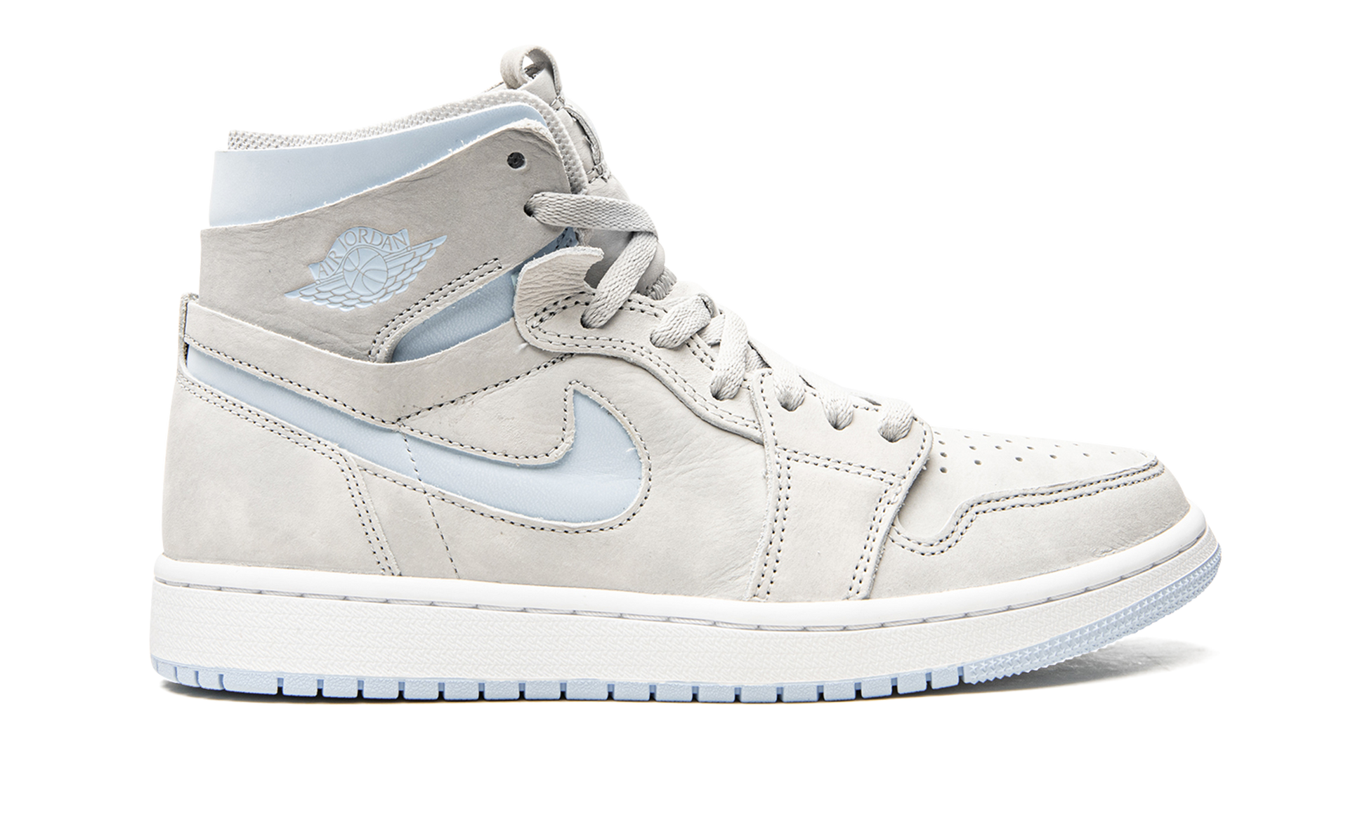 The Women’s Air Jordan 1 High Zoom CMFT “Grey Fog” is a women’s-exclusive colorway of the alternate version of Michael Jordan’s retro basketball shoe that features additional cushioning and other design modifications. The Jordan 1 Zoom Comfort debuted in 2020 as part of Jordan’s continuous efforts to expand the look and performance components of the veritable shoe. Armed with even more padding around the ankle collar, the Jordan 1 High Zoom CMFT also combines different materials and colors for a fresh new vibe. On the “Grey Fog,” the upper appears in Grey Fog-colored nubuck and features a cut-out Celestine Blue Swoosh on the sides and “Wings” logo on the collar. The Jordan 1 Comfort features an unfinished collar and a “Zoom Air” branded tongue tag. The advanced cushioning technology is encased within the white midsole for all-day comfort. Release date: November 18, 2021 Grey Fog