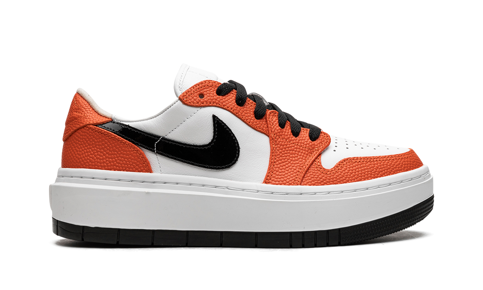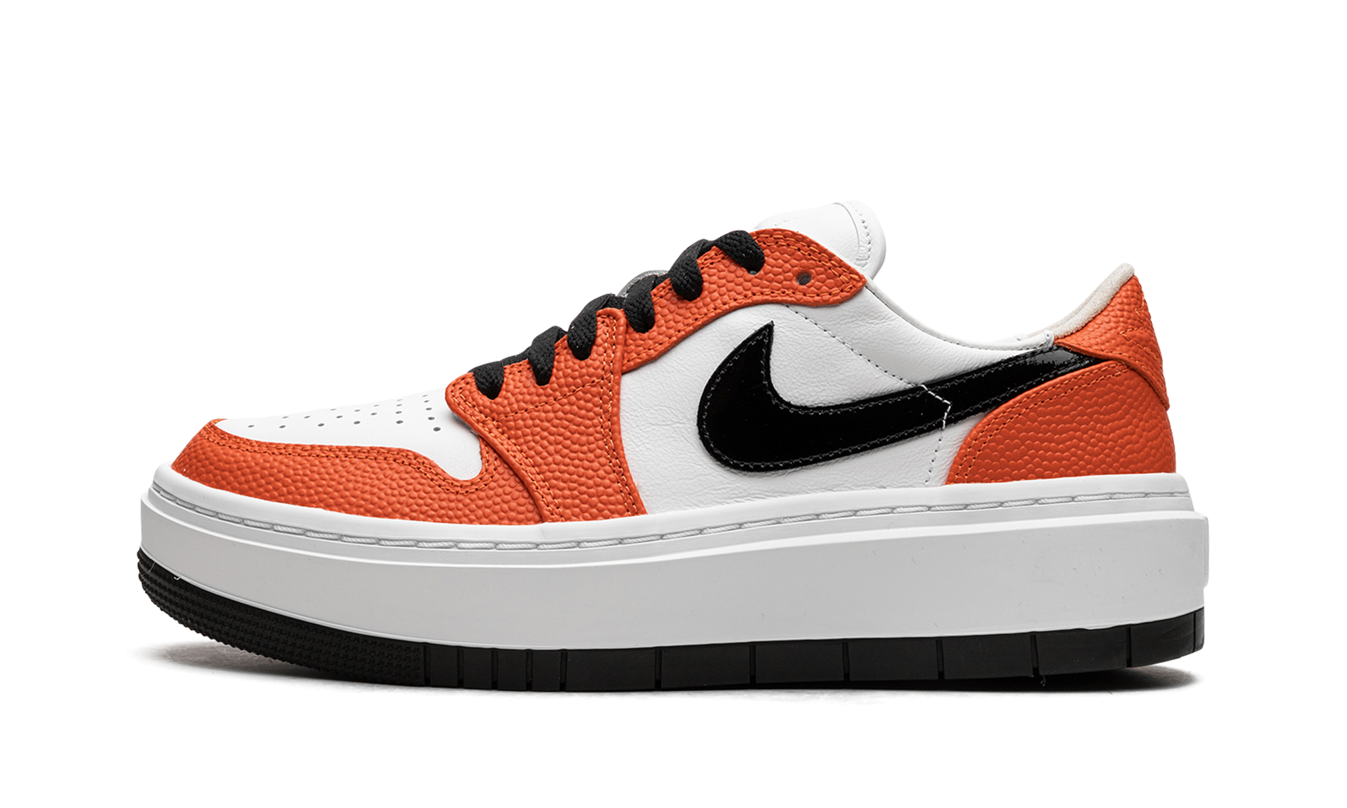 The Women’s Air Jordan 1 Low Elevate SE "Brilliant Orange" is a women’s-exclusive colorway of the casual shoe inspired by the WNBA. The Jordan 1 Low Elevate updates the Jordan 1 Low with a platform-style sole that gives the wearer a boost in height. As for the “Brilliant Orange” colorway, the design shows love to the WNBA with its Brilliant Orange-colored, basketball-textured leather overlays. A black leather Swoosh appears on each side of the shoe and a bubble-style “Wings” logo is seen on the heel. The Jordan 1 Low Elevate features an exaggerated, platform-style white rubber midsole that adds significant height to the shoe’s profile. Release date: July 13, 2023 Brilliant Orange