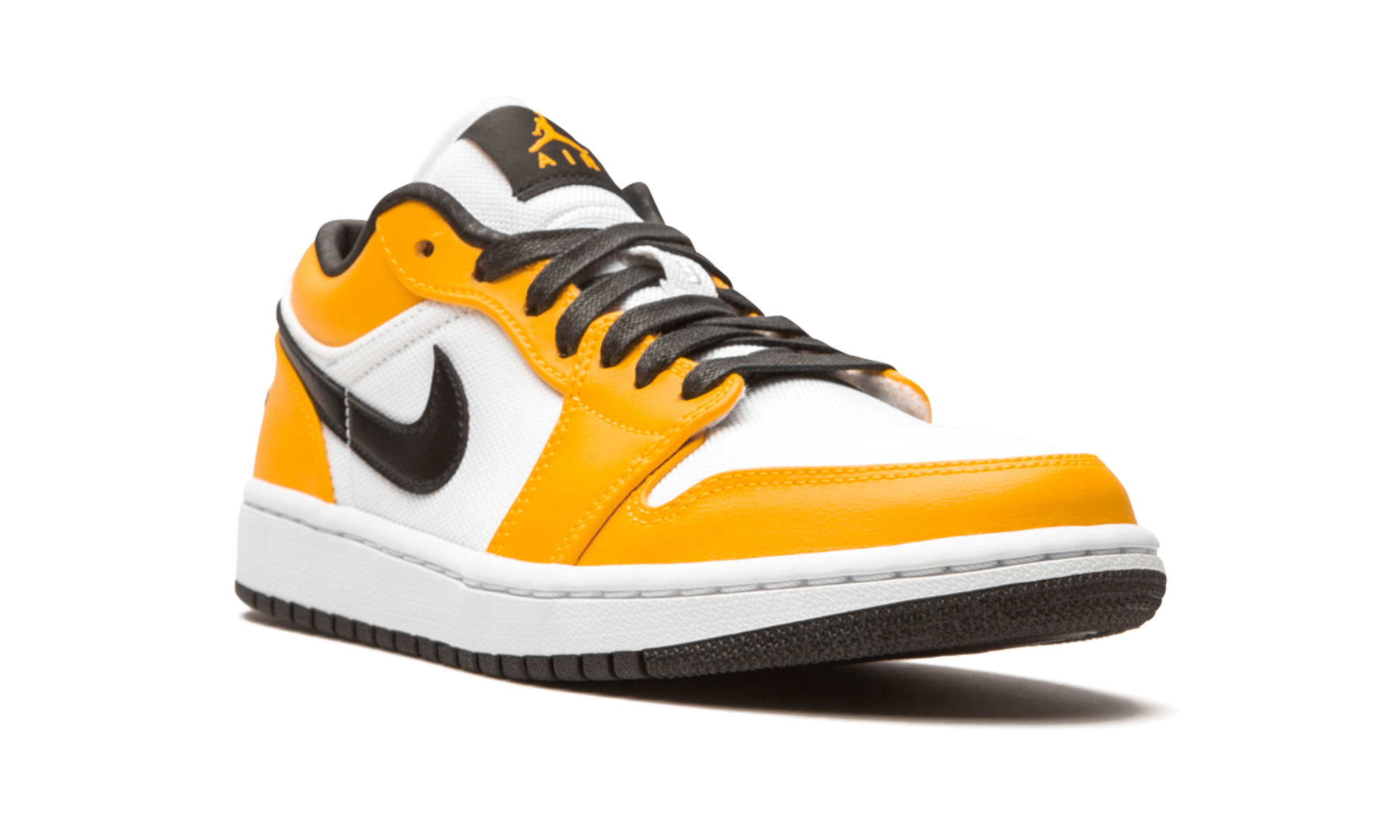 The Women’s Air Jordan 1 Low “Laser Orange” is an exciting new colorway of Michael Jordan’s first signature shoe in the low-top silhouette. This “Laser Orange” design is fitted in women’s sizing and features a unique mixture of materials. Durable white canvas appears as the base of the upper for the toe, mid-panel, and tongue. Contrasting Laser Orange leather overlays cover the forefoot, eyelets, collar, and heel. Jordan Brand places a black leather Swoosh on either side. A black embroidered “Wings” logo is stitched onto the heel. Additional branding hits appear on the tongue, where an orange accented Jumpman graces the black nylon tongue tab and white “23” insignia dots the lace overlay. Black waxed laces finish off the look. Laser Orange