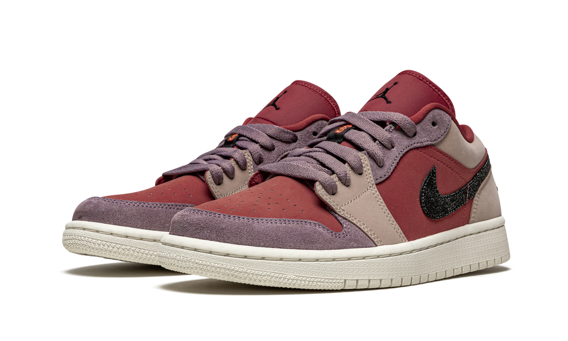 The Women’s Air Jordan 1 Low “Canyon Rust” is a women’s version of Michael Jordan’s first signature shoe in a unique mix of tones. Yet another vibrant look for the popular low-top Jordan 1, the “Canyon Rust” features synthetic nubuck panels in Canyon Rust on the perforated toe and on the mid-panel and on the nylon tongue. Beige overlays appear on the forefoot, lower eyelets, collar, and heel. Elsewhere, buttery Purple Smoke suede detailing can be found on the toe cap and upper eyelets and the same shade of dusty purple is used on the laces. A black Swoosh with glitter speckling appears on either side and a black “Wings” logo is embroidered on the heel. Canyon Rust