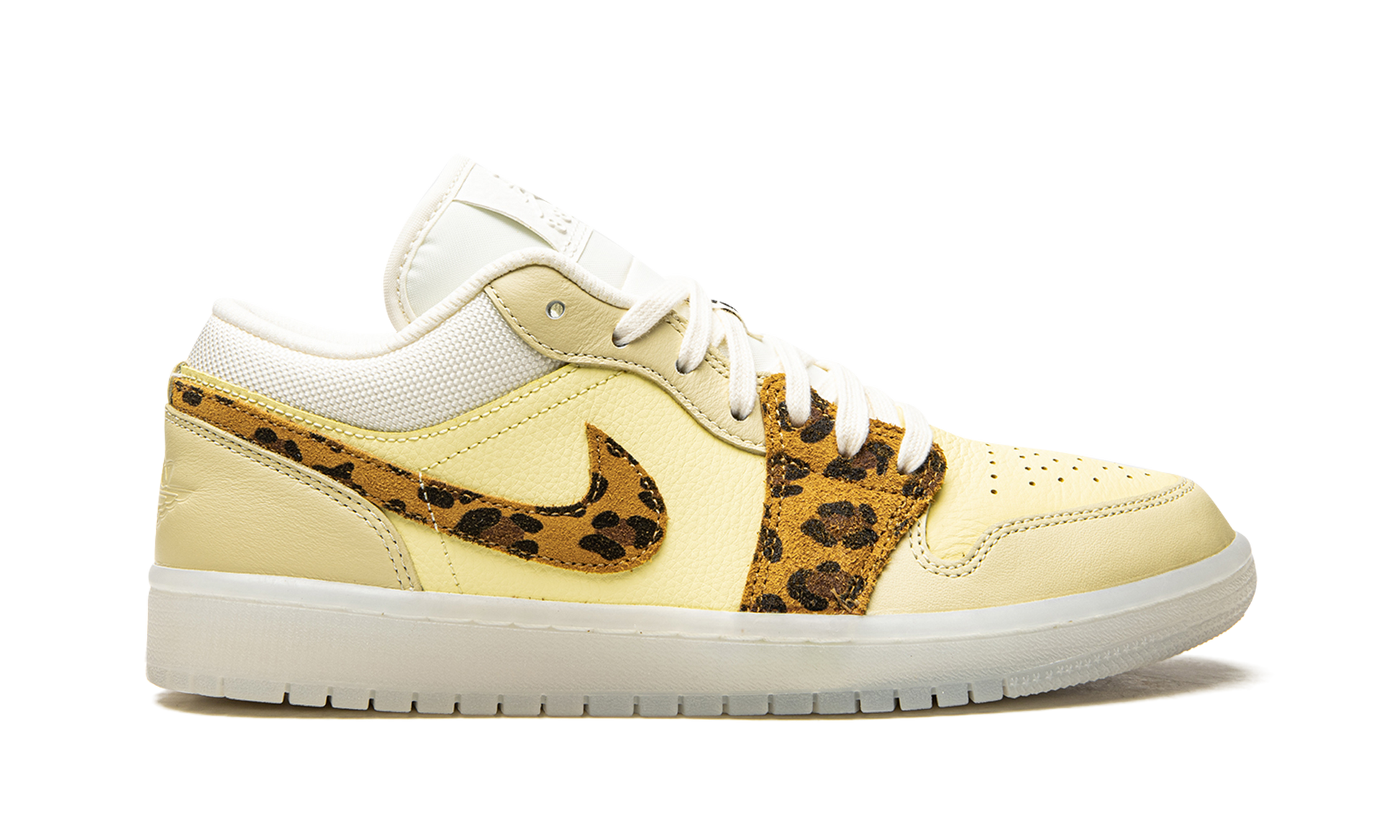 The Women’s Air Jordan 1 Low “SNKRS Day” is an August 2021 release of the women’s version of the vintage basketball shoe that shows appreciation for the fourth anniversary of Nike SNKRS app in Europe. This exploratory look for Michael Jordan’s first signature shoe features leopard print on the forefoot and Swoosh. The base is arranged in a combination of cream and yellow leather panels. A tonal ball-and-wings logo appears on the heel and a white debossed Jumpman with “Air” branding highlights the look of the white leather tongue tag. Black “23” detailing on the lace overlay completes the look. Release date: August 8, 2021 SNKRS Day