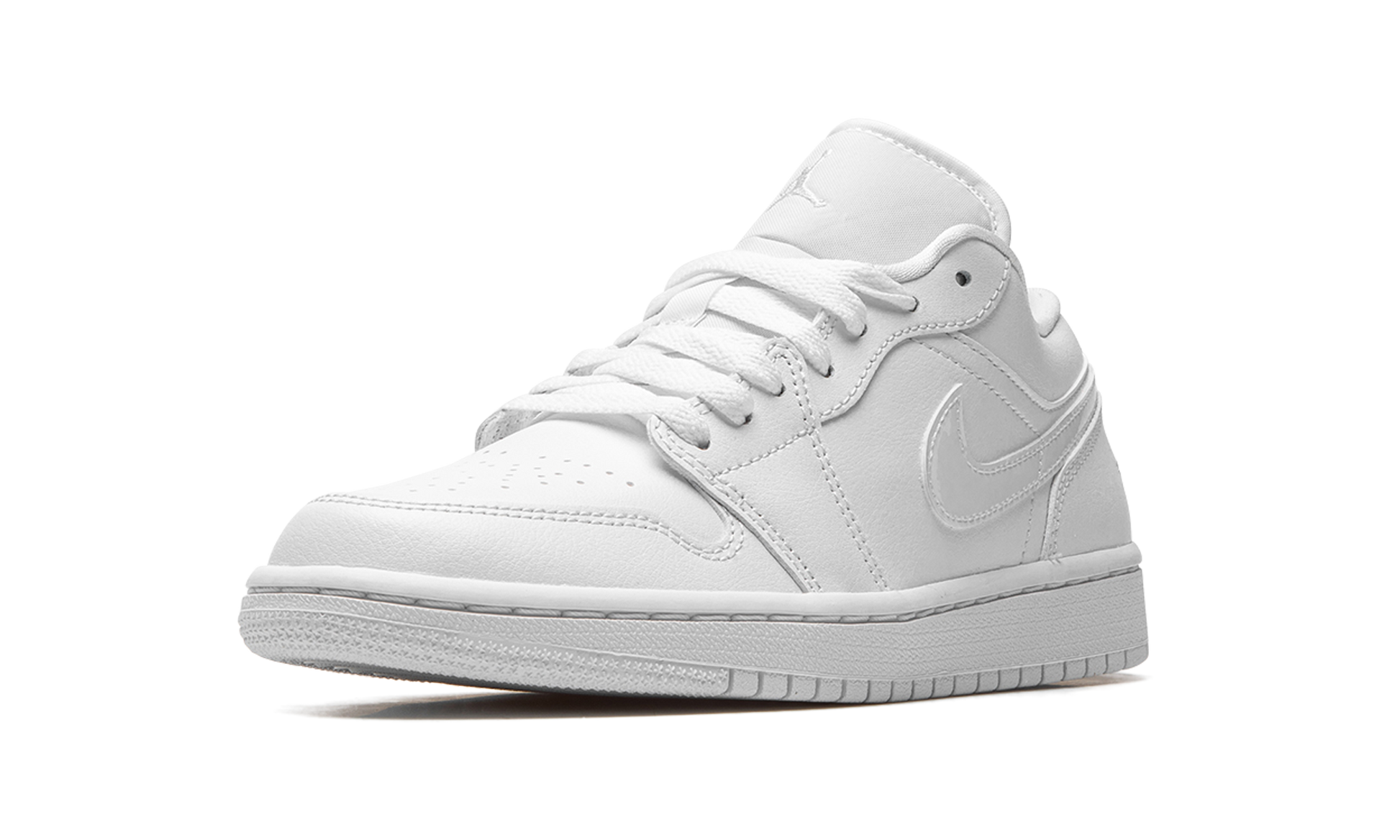 The Women’s Air Jordan 1 Low “Triple White” is the women’s sizing of the monochromatic colorway of the retro basketball shoe. Michael Jordan’s first signature shoe, the Air Jordan 1 is one of the greatest sneakers of all time, and on the “Triple White” Jordan 1 Low, one of the most versatile, too. The shoe has an all-white leather upper with a white leather base and tonal leather overlays. A white leather Swoosh appears on either side. White “Wings” branding is embroidered on the heel and a white Jumpman is stitched onto the tongue. Underfoot, a white rubber sole completes the look. Triple White