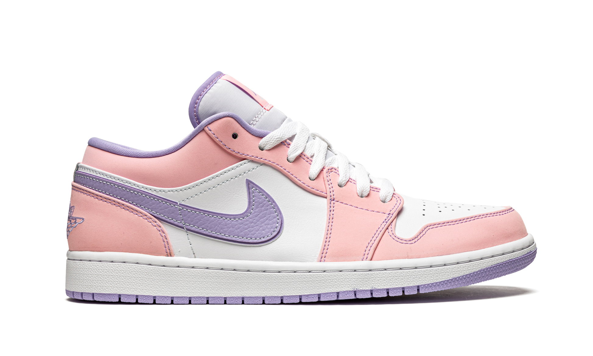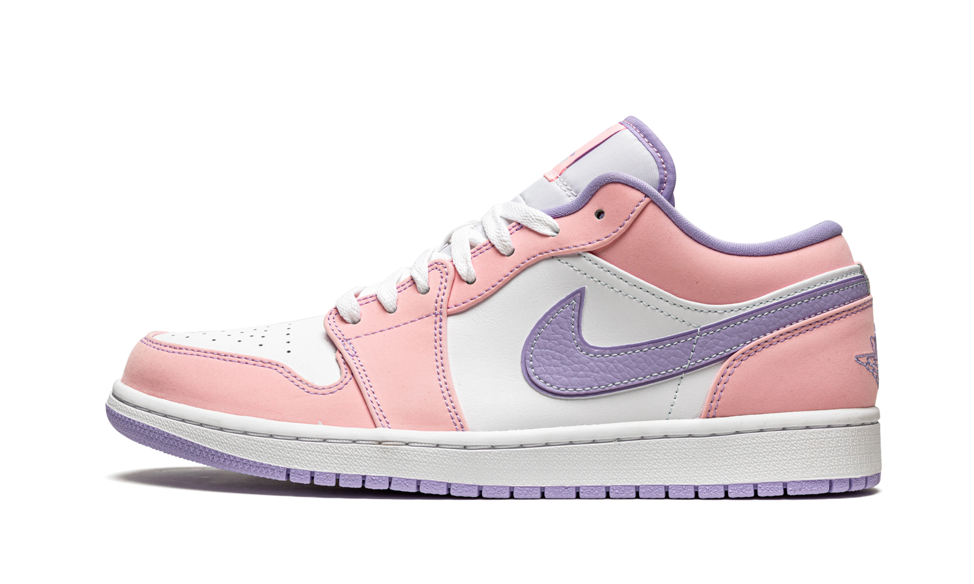 The Air Jordan 1 Low SE “Arctic Punch” is a Spring 2021 colorway of Michael Jordan’s first signature shoe in its low-top silhouette. As fresh as any Easter inspired shoe on the market, the “Arctic Punch” is a vibrant design teeming with airy spring vibes as evidenced by its pink leather panels and Purple Pulse tumbled leather Swooshes on each side. A pink nylon tongue tag with purple Jumpman detailing and a purple liner further the model’s unofficial Easter theme. An embroidered “Wings” design on the back of the shoe is consistent with the styling of many Air Jordan 1 Lows. Arctic Punch