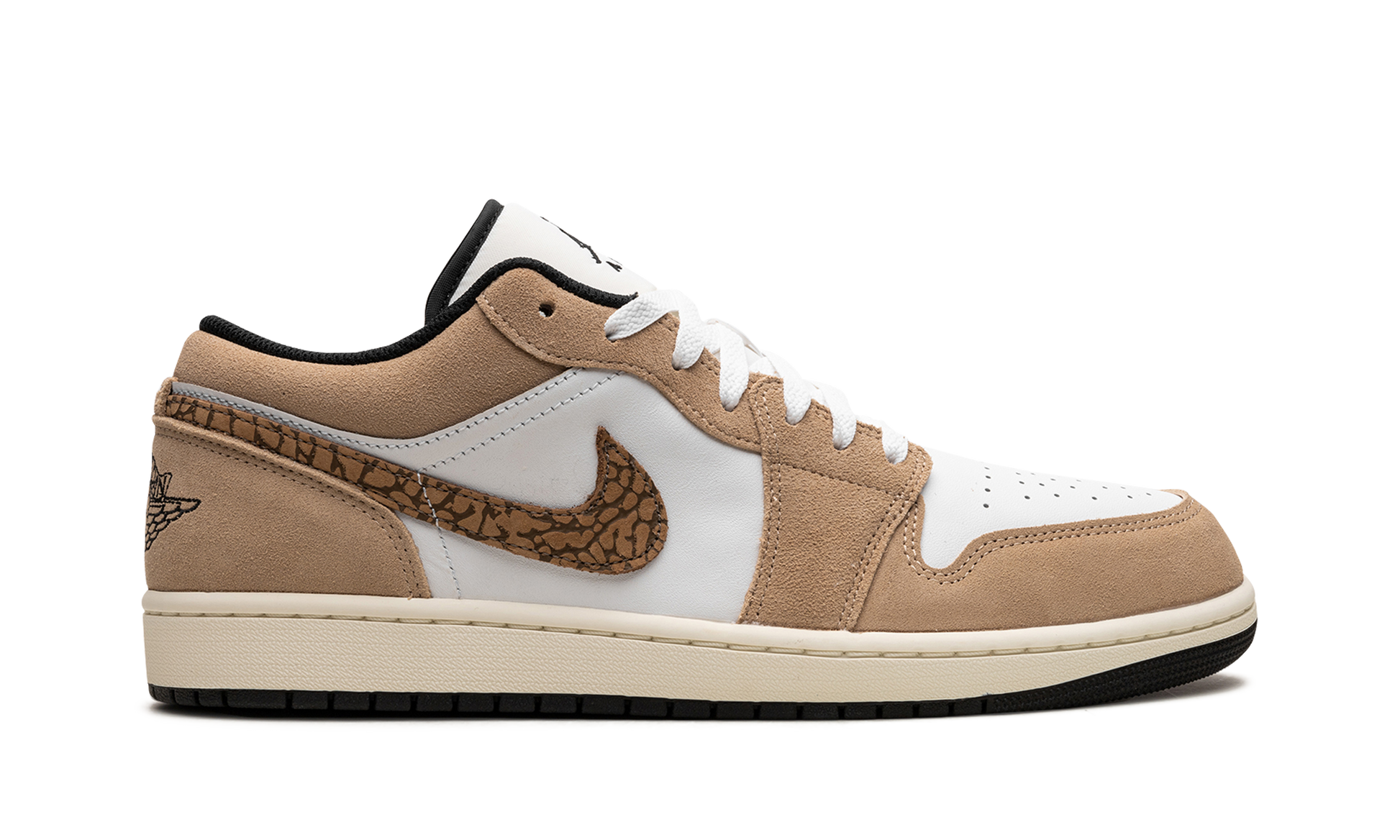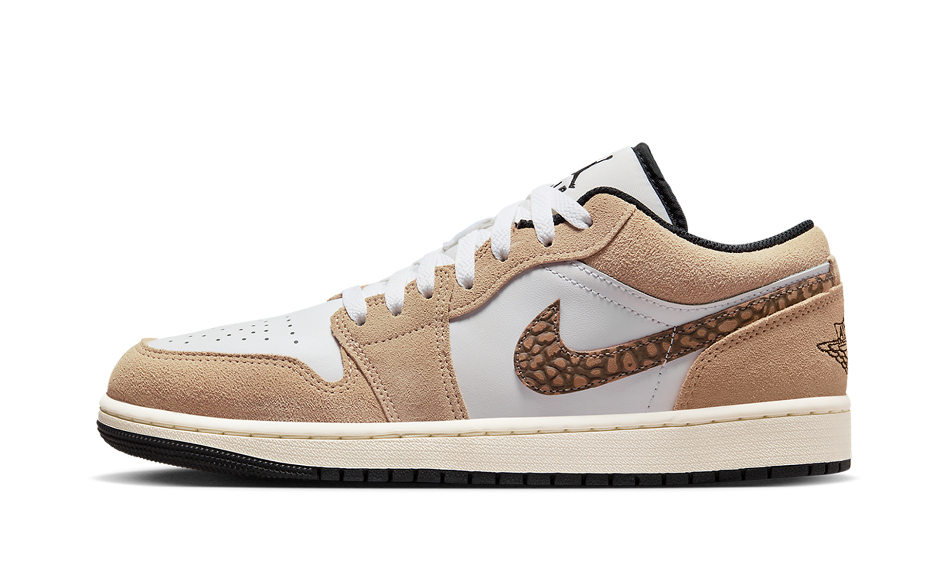 The Air Jordan 1 Low SE "Brown Elephant" is a colorway of the retro basketball shoe in low-top form with classic elephant print on its design. The “Brown Elephant” colorway of the always-popular Jordan 1 Low features a white leather base with tan suede overlays. The Swoosh on the sides has been designed in brown elephant print, a classic pattern that first appeared on the Air Jordan 3 way back in 1988. As for the rest of the shoe, a “Wings” logo is embroidered on the heel and a Jumpman is seen on the tongue. An aged midsole and brown rubber outsole complete the look. Release date: July 20, 2023 Brown Elephant