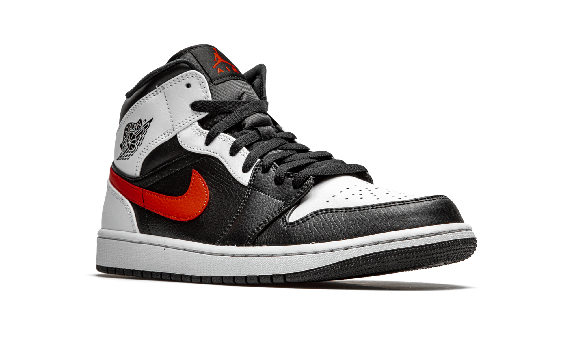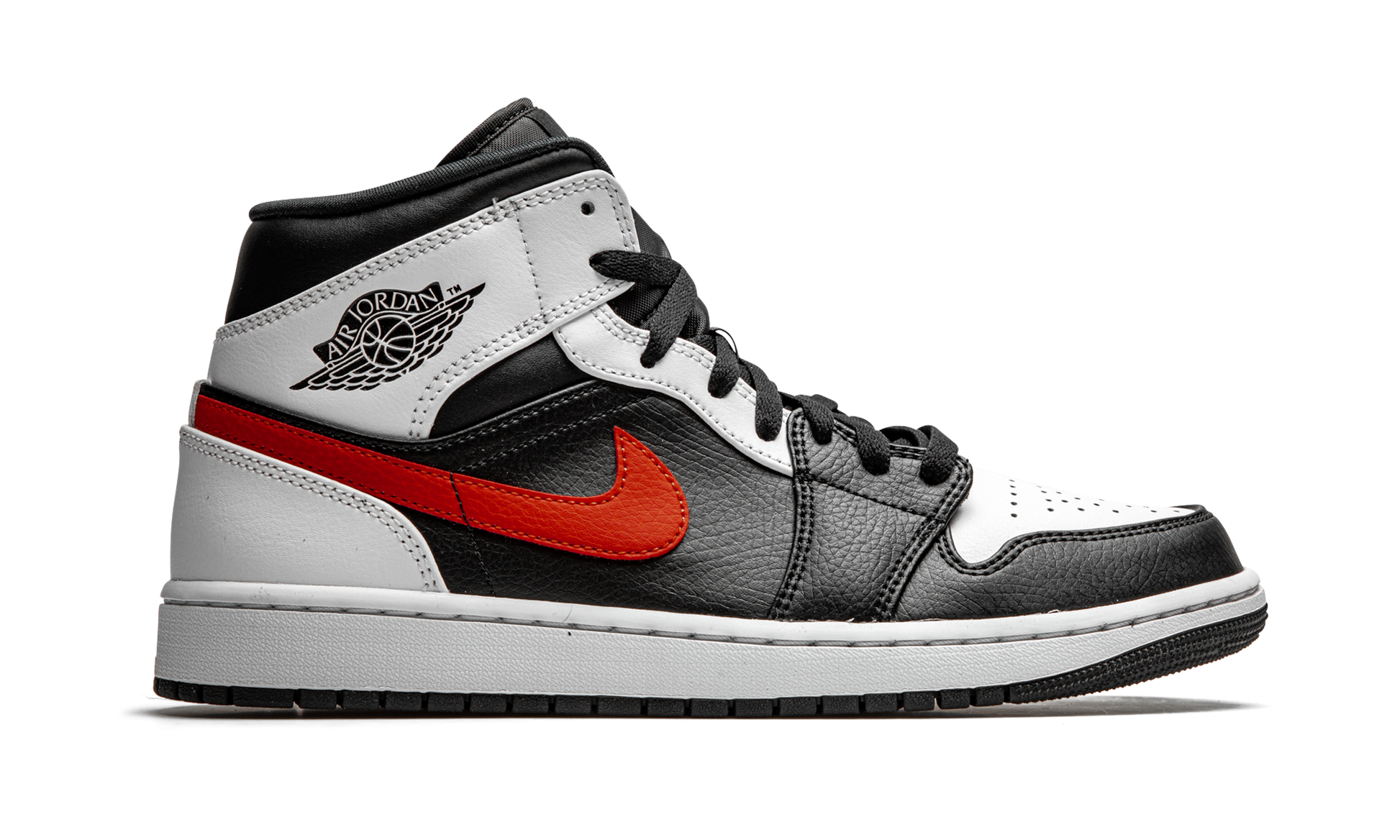 The Air Jordan 1 Mid “Chile Red” is a Chicago Bulls inspired look for Michael Jordan’s first signature shoe in its mid-top silhouette. The Bulls’ red, black, and white team uniform colors are proudly on display on the “Chile Red,” though the aforementioned shade of red is slightly darker than the hue associated with the NBA team. Nonetheless, the arrangement of colors make for yet another versatile Jordan 1 Mid. Black tumbled leather overlays contrast the matte white leather construction of the perforated toe and the upper eyestay, collar, and heel. A Chile Red leather Swoosh appears on either side and a black “Wings” graphic can be found on the collar. Additional branding appears in the form of a red Jumpman on the nylon tongue tag. Chile Red