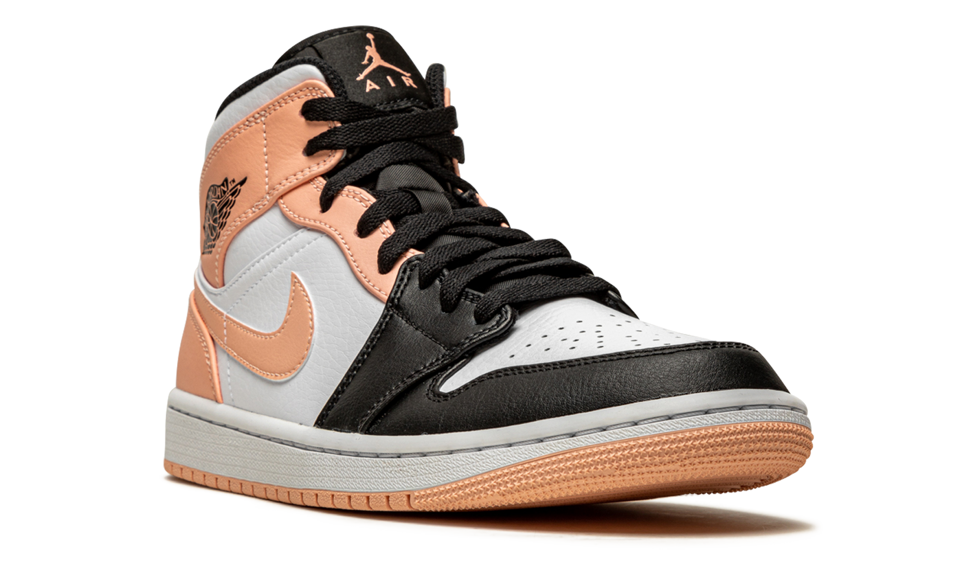 The Air Jordan 1 Mid “Crimson Tint” is a unique colorway of Michael Jordan’s first signature shoe. Though the Crimson Tint leather overlays are the main attraction, the model does show love to a classic Air Jordan 1 colorway: the model’s original “Black Toe” makeup from 1985. The black leather panels on the toe cap, forefoot, and lower eyelets contrast the white perforated leather found on the toe and mid-panel, evoking the “Black Toe” design. A pink leather Swoosh appears on both sides and a black “Wings” logo is stamped on the collar. A Crimson Tint Jumpman logo can be found on the black nylon tongue. Black shoelaces, a white midsole, and a Crimson Tint outsole round out the look. Crimson Tint