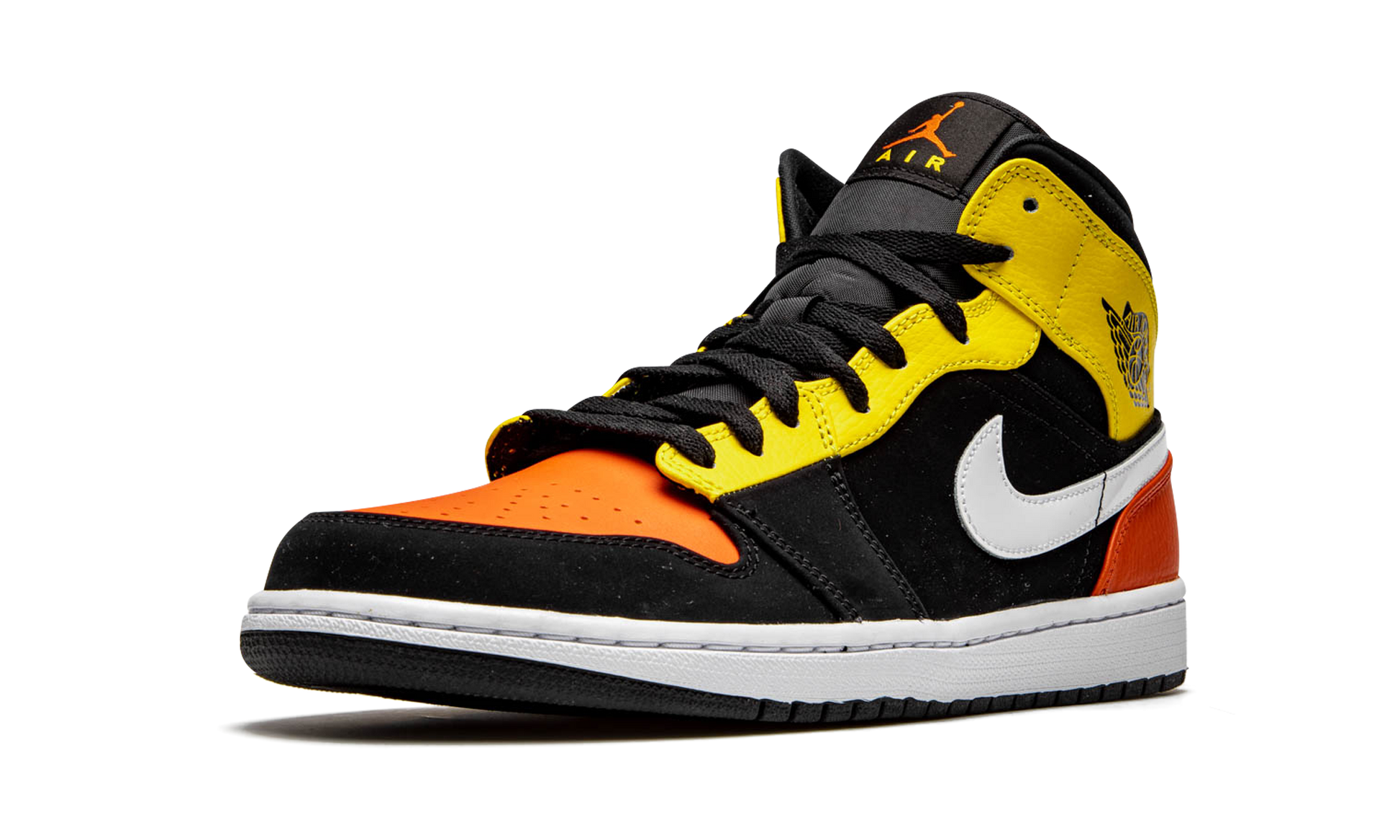 The Air Jordan 1 Mid SE “Amarillo Orange” gives the alternate mid-top version of Michael Jordan’s first signature shoe a decidedly off court look. Over the years, few silhouettes in Jordan Brand’s footwear collection have been released in more exciting and bold colorways than the Air Jordan 1 Mid. The “Amarillo Orange” is a testament to the notion. A black synthetic nubuck material is applied to the mid-panel, forefoot, and collar. Team Orange leather detailing appears on the perforated toe and bright shade of yellow leather is used on the eyelets and collar. Branding wise, a white leather Swoosh and black “Wings” logo adorn the mid-panel and collar, respectively. An Amarillo Orange leather panel on the heel adds to the mismatched design. Jordan Brand finishes off the look with an orange Jumpman on the black nylon tongue. Amarillo Orange