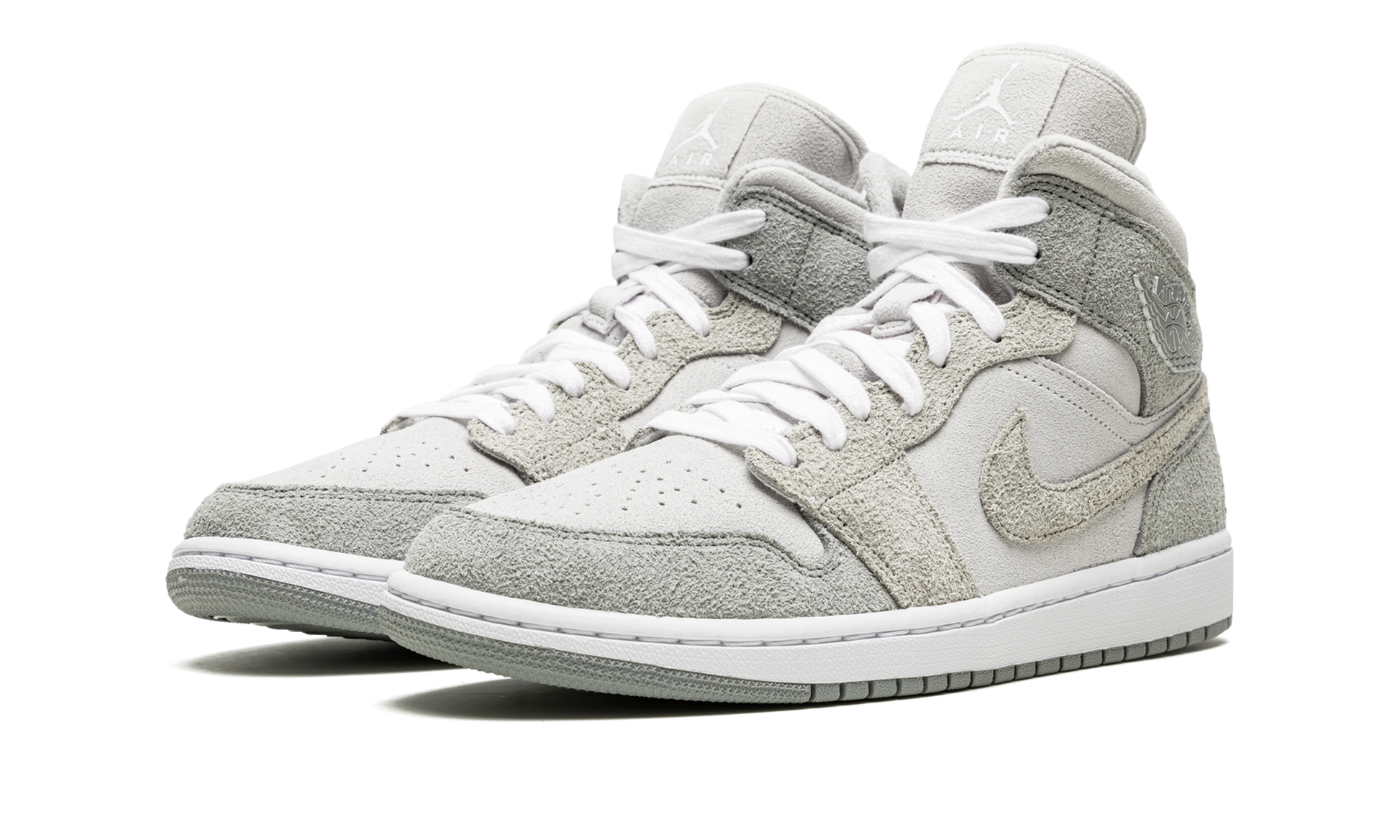The Women’s Air Jordan 1 Mid SE “Particle Grey Suede” is a women’s-exclusive colorway of the popular lifestyle shoe in a colorway that features a unique combination of materials. The “Particle Grey Suede” Jordan 1 Mid features hairy suede panels and Swoosh branding designed in Particle Grey and College Grey. The overlays are contrasted by a light grey suede base. A metal “Wings” logo is found on the collar and grey Jumpman and “Air” branding appear on the tongue tag. Ideal for cooler temperatures, the shoe features a plush fleece-lined interior that retains warmth and provides a comfortable fit to the wearer. Grey Fleece