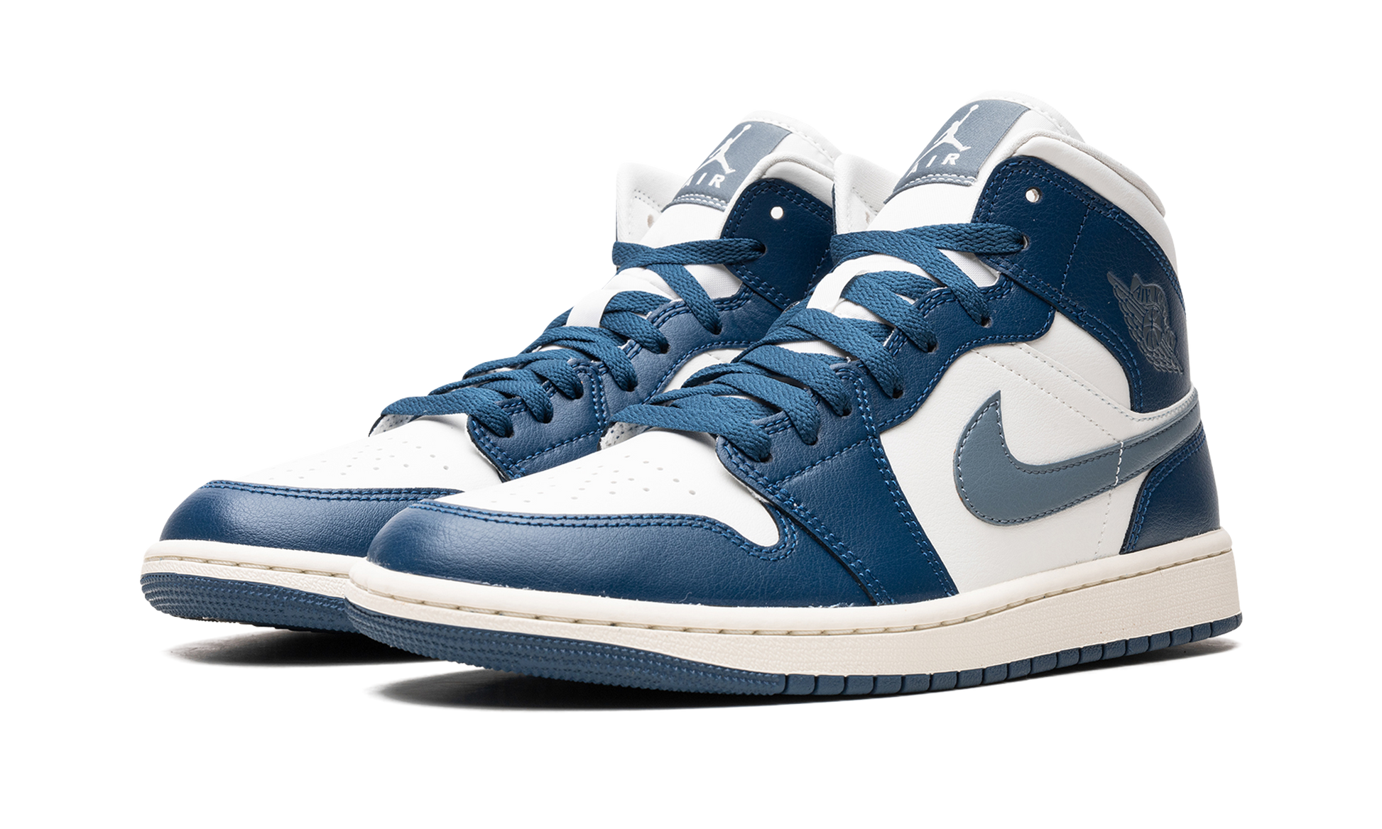 The Women’s Air Jordan 1 Mid "French Blue" is a women’s-exclusive colorway of lifestyle shoe with an appealing color block. The upper features a Sail (off-white) leather base with French Blue leather overlay panels. An Ozone Blue leather Swoosh appears on both sides. A grey “Wings” logo can be found on the collar overlay while a white Jumpman is seen on the grey nylon tongue tag. Underfoot, a Sail rubber midsole and French Blue outsole complete the clean look. Release date: August 31, 2023 French Blue