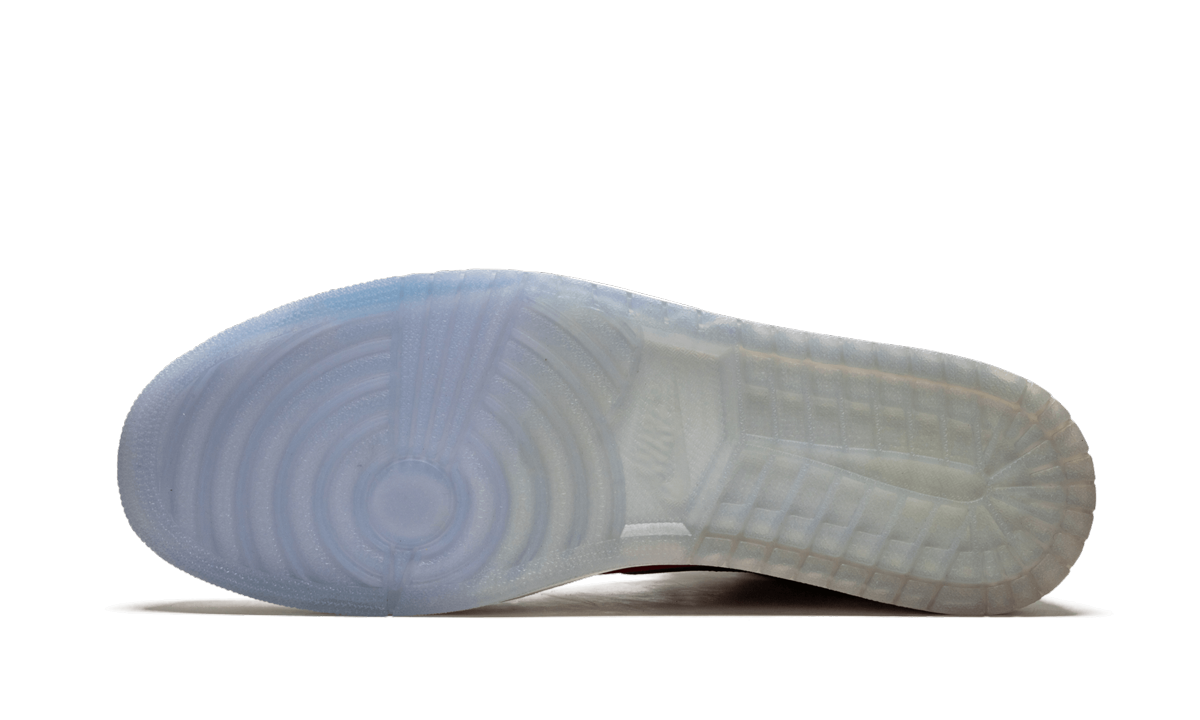 The Air Jordan 1 borrows the iconic “Carmine” color scheme from the Air Jordan 6, featuring a black and red upper with black accents and an icy clear sole. Carmine