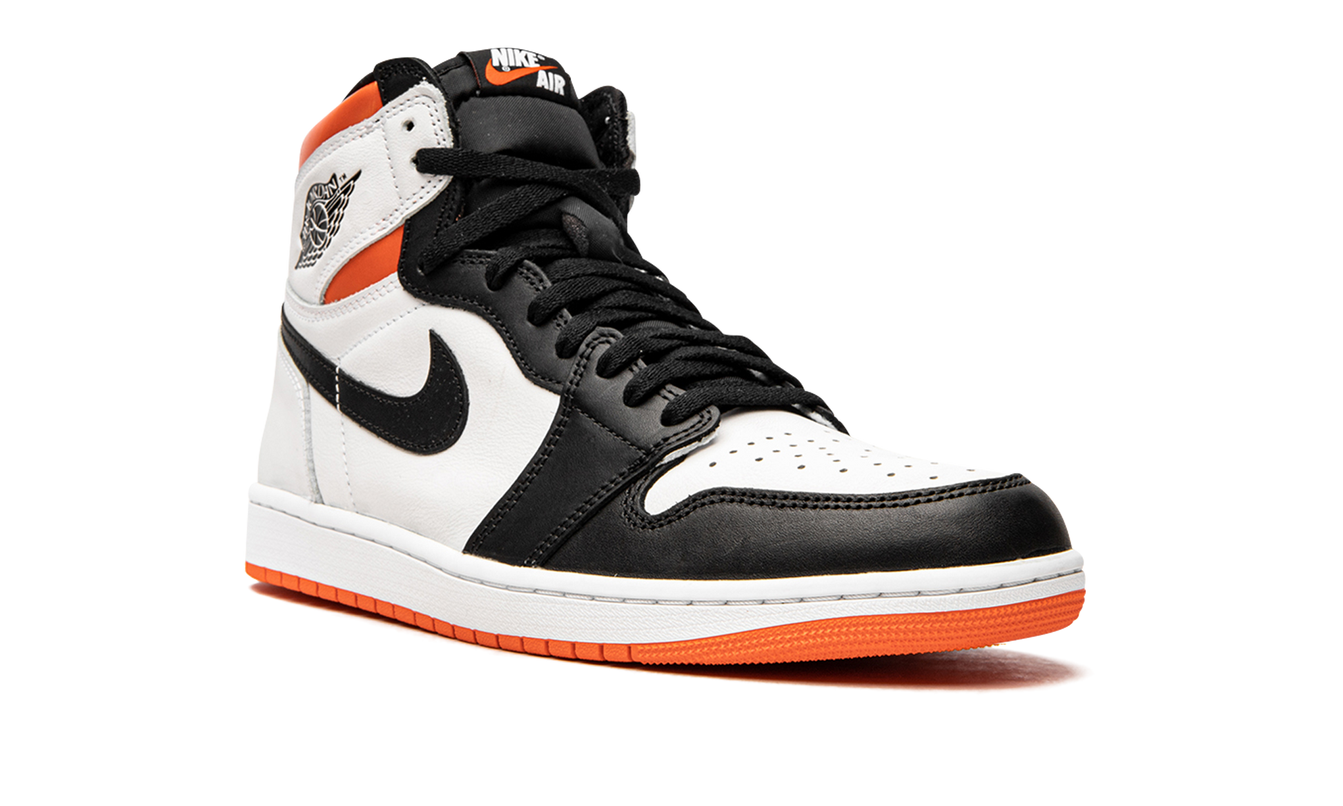 The Air Jordan 1 High OG “Electro Orange” is another clean look for Michael Jordan’s first signature shoe that utilizes orange accenting in its design. A July 2021 release by Jordan Brand, the “Electro Orange” edition has a color block reminiscent of an original Air Jordan 1 colorway: the “Black Toe.” It should also call to mind the beloved "Shattered Backboard" series thanks to the orange, black, and white color scheme. White perforated leather graces the toe and contrasting black leather appears on the toe cap, forefoot, and eyelets. Elsewhere, white tumbled leather can be found on the mid-panel, collar, and heel. A black leather Swoosh appears on both sides and a black “Wings” logo is located on the white leather overlay above the orange neoprene collar. A classic “Nike Air” logo with an orange Swoosh appears on the black tag on the black nylon tongue. An orange rubber outsole contrasts the crisp white midsole. Release date: July 17, 2021 Electro Orange