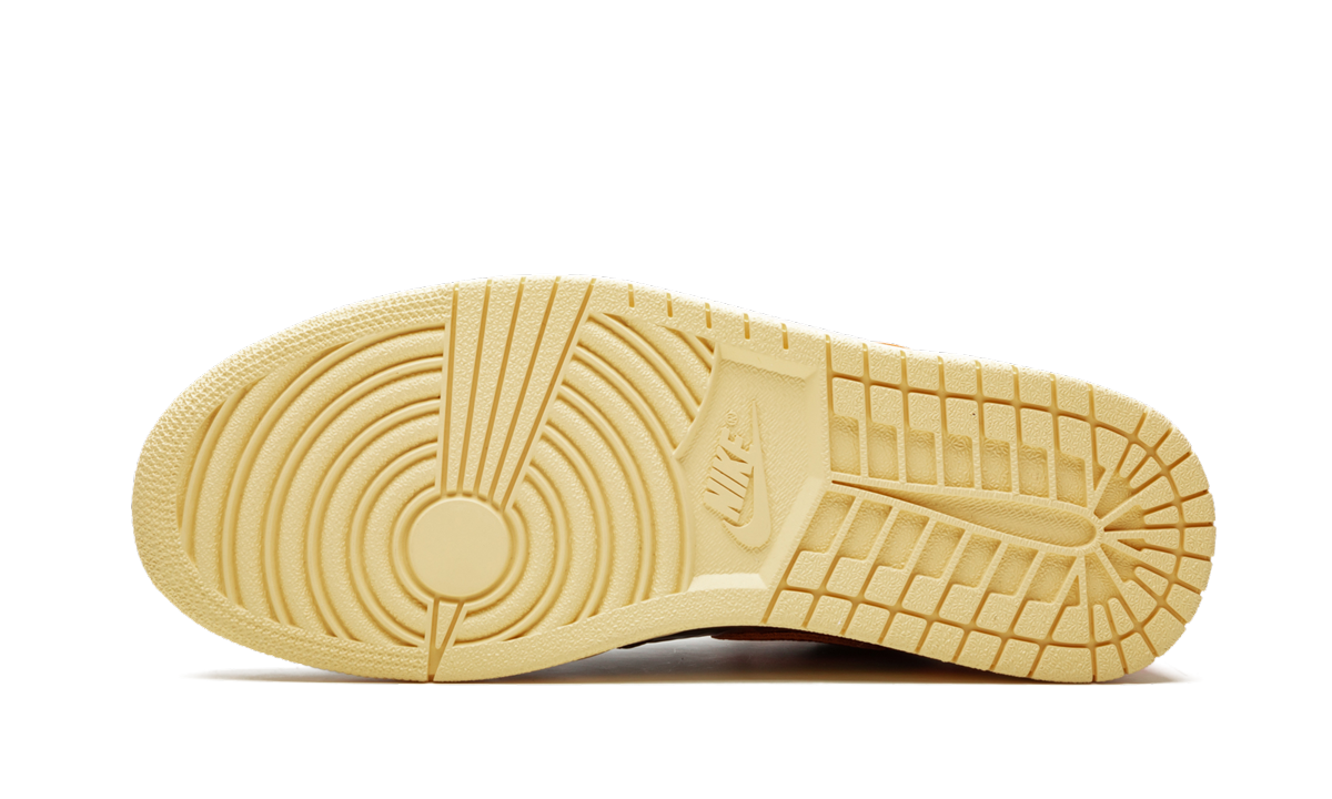 The Air Jordan 1 OG “Shattered Backboard 3.0” is the third release of the immensely sought-after “Shattered Backboard” colorway of the Air Jordan 1. The “Shattered Backboard” theme draws inspiration from an exhibition game in Italy in which Michael Jordan played during his rookie season. During the game, Jordan famously broke the glass of the backboard following a monstrous dunk. The first two iterations of the “Shattered Backboard” were a success due to their use of premium materials and eye-catching orange and black colorways. The “Shattered Backboard 3.0” falls in line with previous versions of the sneaker and adds new design features to stand out on its own. One noticeable difference is that a crinkled glossy patent leather upper replaces the leather found on the first two “Shattered Backboard” models. The black crinkled glossy leather is featured on the mid-panel, toe, and ankle collar. Pale Vanilla Starfish crinkled glossy leather adds bursts of color around the toe, quarter panel, Swoosh, and lateral heel. A black leather Wings logo sits near the collar. A vintage-inspired yellow sole gives the sneaker a lovingly worn in appearance. Release date: Fall 2019. Shattered Backboard 3.0