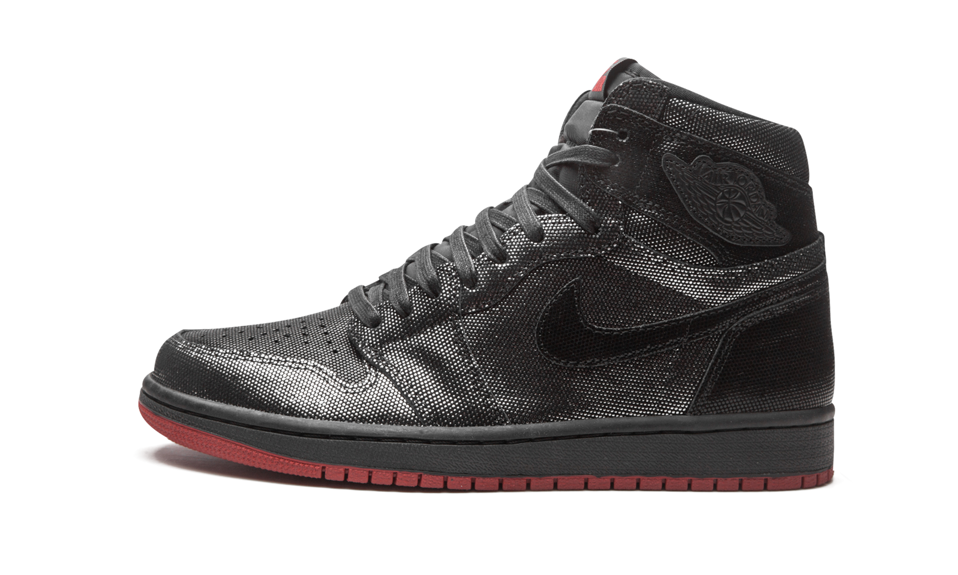 The Air Jordan 1 High “SP Gina” is a special colorway of the iconic silhouette in collaboration with Shoe Palace. The colorway honors Virginia Wright, better known as SP Gina, a beloved teacher and Air Jordan fanatic from San Jose, California. SP Gina is a local hero, known for her work as an elementary school teacher helping educate and inspire children. She is also a self-proclaimed sneakerhead, who has developed a close relationship with her local Shoe Palace store in San Jose. Shoe Palace honored her with this limited edition colorway of the Air Jordan 1, featuring a black textile upper with a unique metallic texture. Red accents are found for the tongue’s Nike Air logo and the outsole. The Air Jordan 1 “SP Gina” released on May 25, 2019 and was sold exclusively by Shoe Palace. This edition comes in a special limited edition metal box that resembles a lunch box. SP Gina
