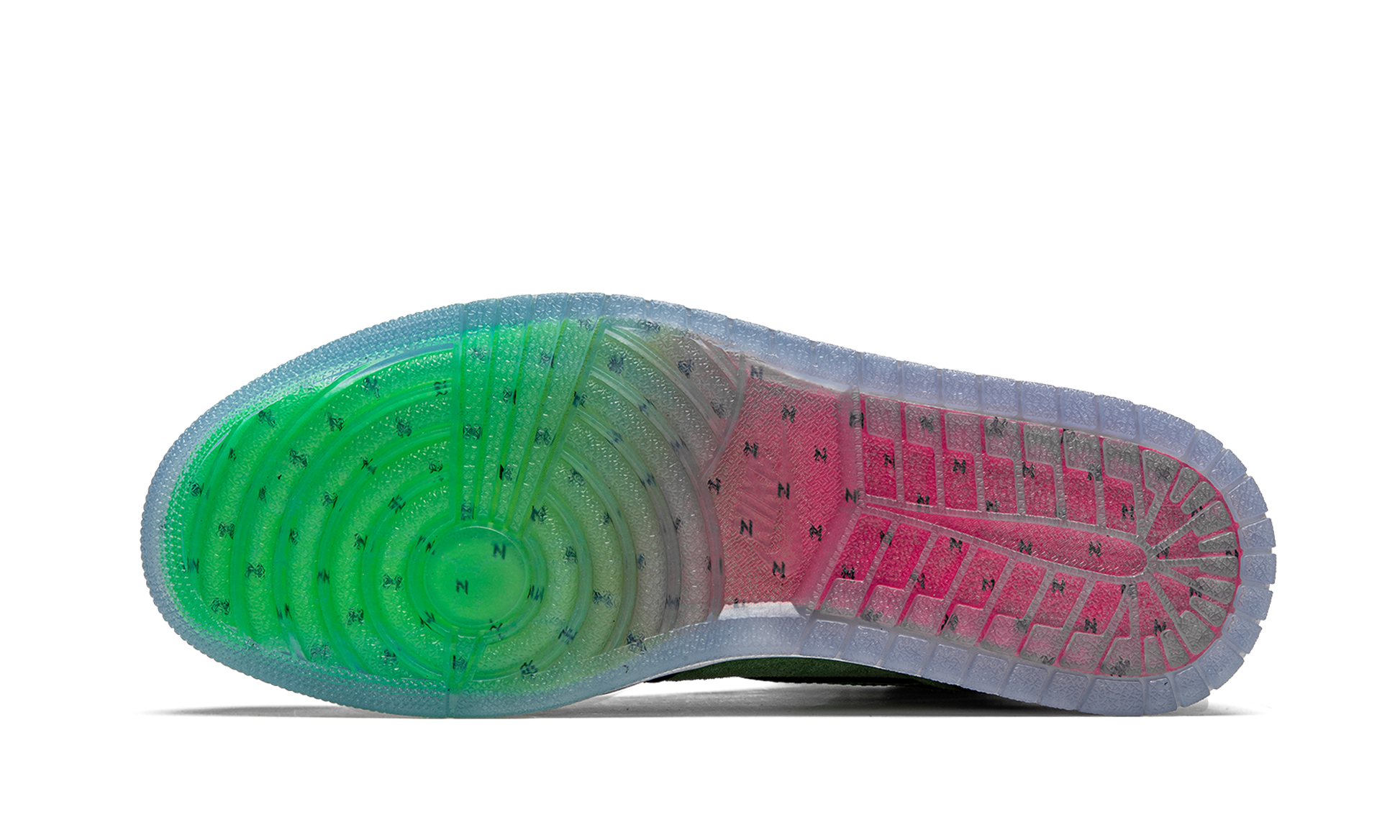 The Air Jordan 1 High Zoom “Zen Green” incorporates Zoom Air technology into the sole of Michael Jordan’s first signature shoe. The Jordan 1 Zoom model made its debut late in 2019 to much success. Now, Jordan Brand returns with this “Zen Green” design as part of its Summer 2020 release cycle, and the results are clearly as favorable. Hairy Zen Green suede dots the perforated toe and mid-panel. Supple black leather overlays can be found on the forefoot, eyelets, collar, and heel. A Silver Metallic Swoosh is located on the mid-panel and features contrasting green stitching. Tonal “Wings” detailing appears on the collar and a mini nylon Zoom tag can be found on the mid-panel beneath the collar. A vibrant neon green sock liner contrasts the black nylon tongue. As previously mentioned, Zoom Air cushioning is embedded within the sole to provide the wearer ample amounts of support. Release date: August 14, 2020. Zen Green