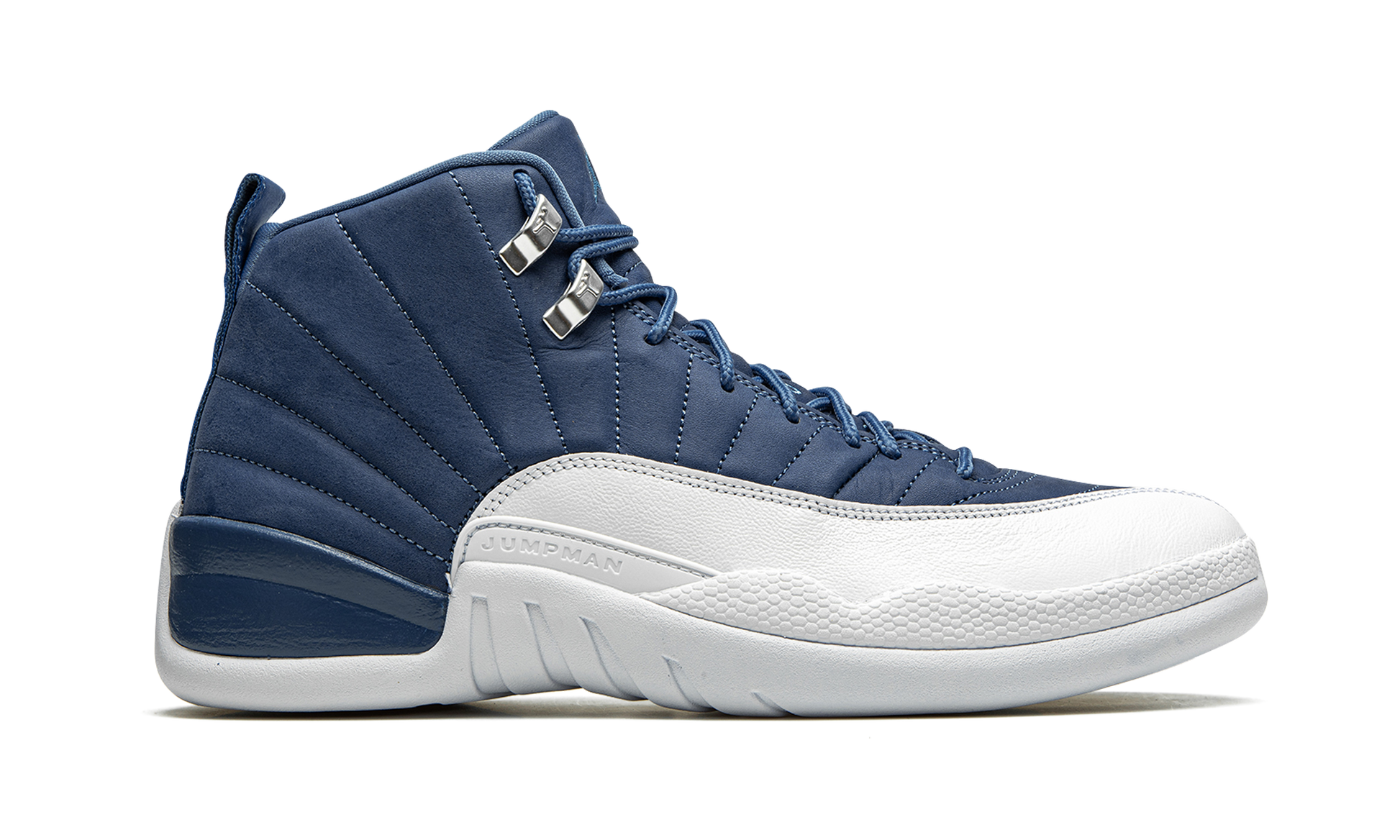 The Air Jordan 12 “Indigo” is yet another desirable colorway of Michael Jordan’s twelfth signature shoe. This late-Summer 2020 release displays a similar color blocking to the Jordan 12 “Obsidian” from 2012, though the upper paneling deviates in shade from dark navy blue to an indigo hue. Smooth white leather dots the mudguard and tonal embossed Jumpman branding appears above the midsole. Silver eyelets with Jumpman detailing, University Blue laces, and tonal embroidered Jumpman branding on the Indigo tongue add further styling to the classic silhouette. A white rubber midsole and outsole complete the look. Release date: August 22, 2020. Indigo