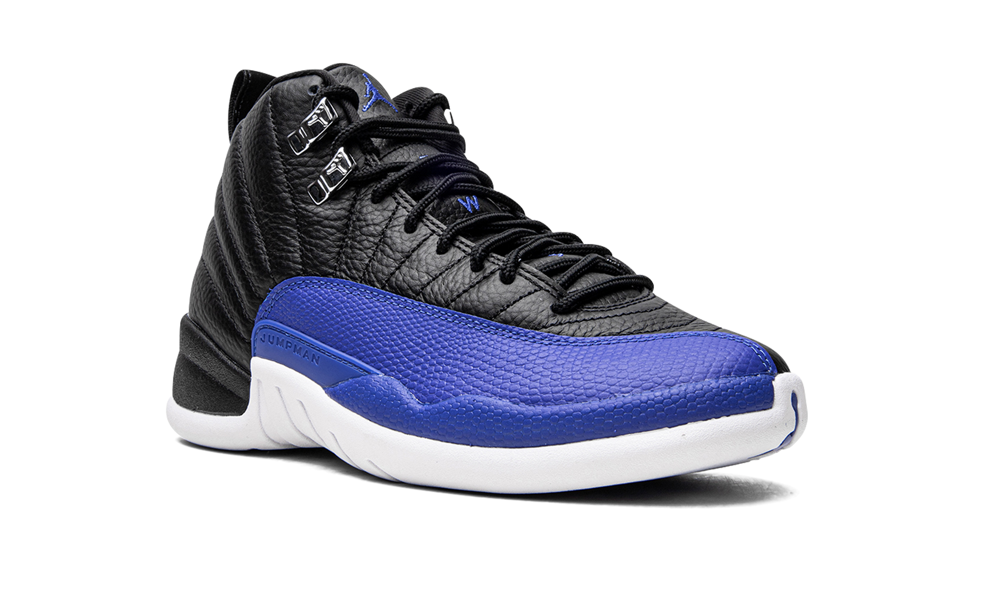 The Women’s Air Jordan 12 “Hyper Royal” is a women’s-exclusive colorway of the retro basketball shoe that was released in October 2022. The “Hyper Royal” draws loose inspiration from the Jordan 12 “Flu Game” and “Playoffs” as it features a black tumbled leather upper with a contrasting mudguard. On the “Hyper Royal,” the model’s signature basketball-textured mudguard appears in royal blue. Additional Hyper Royal accenting includes a royal Jumpman logo and “Two 3” branding on the tongue, “23” detailing on the back of the midsole, and Jumpman and “Celebrating 25 Years of Jordan in China” insignia on the heel. Metallic Silver eyelets and blue Jumpman branding on the outsole complete the look. Release date: October 1, 2022 Hyper Royal