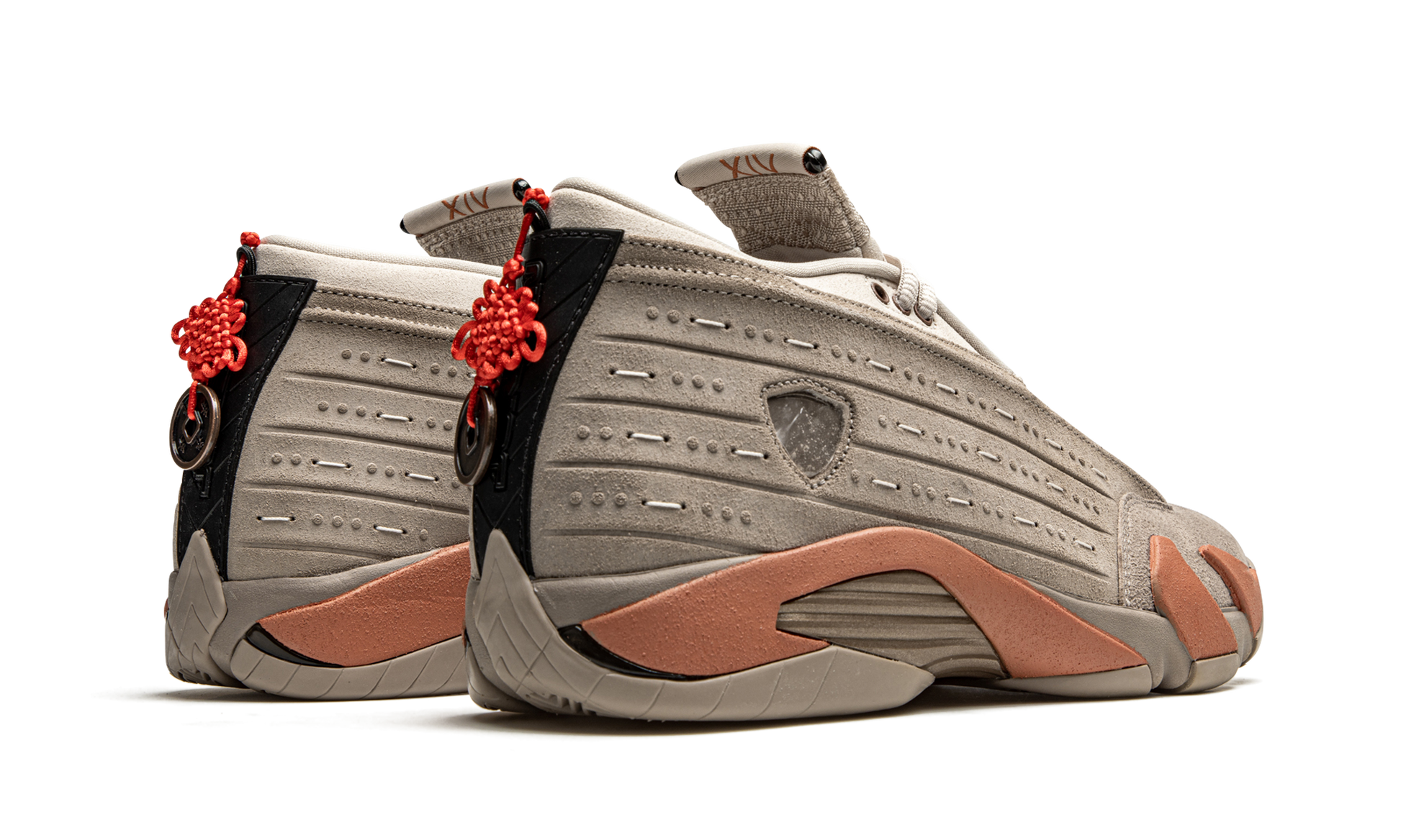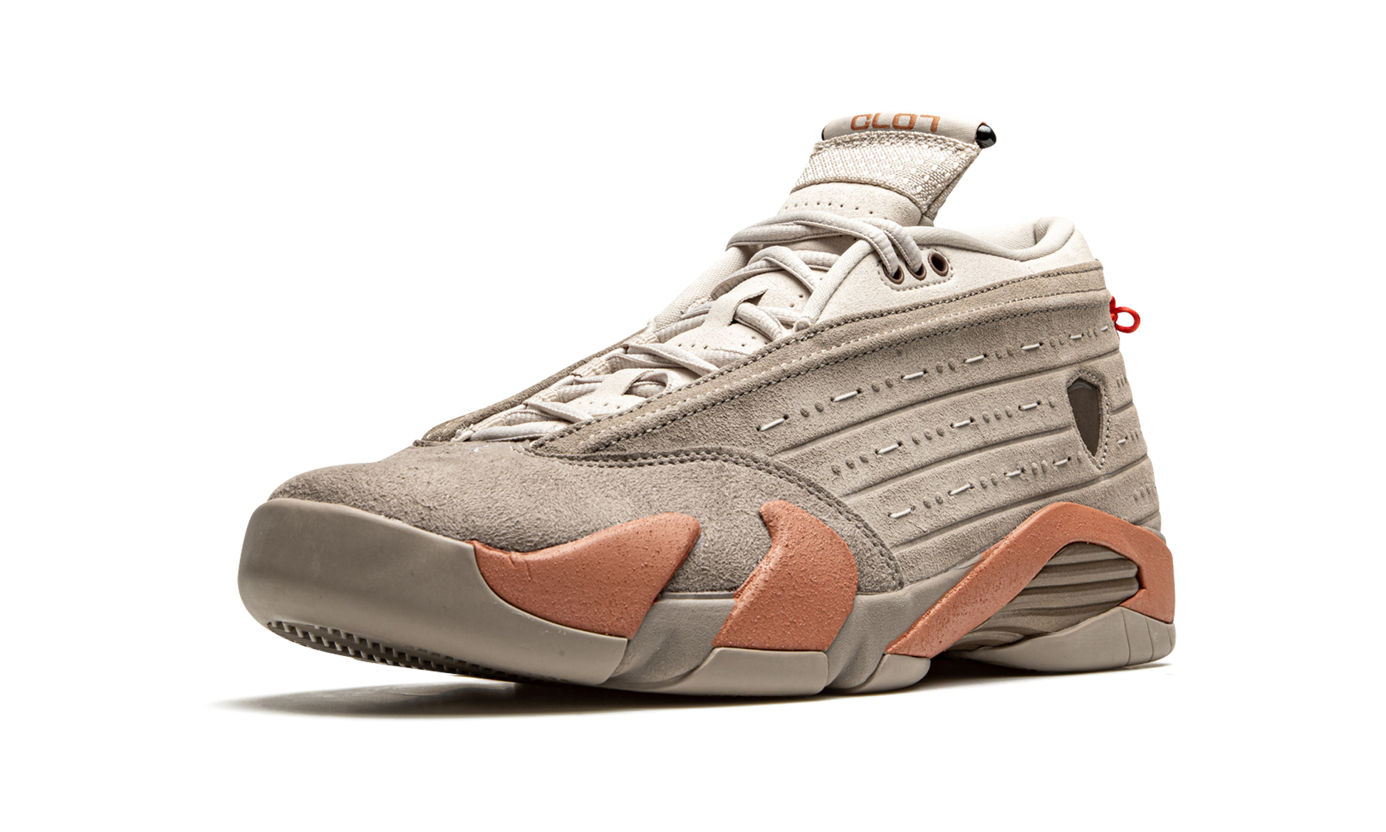The Clot x Air Jordan 14 Low “Terracotta” is a February 2021 collaboration between Edison Chen’s streetwear label and Jordan Brand on Michael Jordan’s fourteenth signature shoe. Inspired by the massive reddish clay sculpted figures used in the burial of China’s first emperor in 210 B.C., the “Terracotta'' progresses Chen’s desire of bridging the gap between Eastern and Western cultures through sneakers. An earthy beige suede overlay can be found on the toe. The rest of the upper is constructed from a slightly lighter shade of matted beige suede for an “ancient” look. “Clot” and “Jordan” branding appear on the top of the left and right tongue, respectively. A metal medallion on the heel symbolizes a warrior on the basketball court. Clot finishes off the look of its “Terracotta” Air Jordan 14 collaboration by adding “clay” inspired detailing to the midsole that gives the shoe a “hardened” look. Release date: February 11, 2021. Clot - Terra Blush