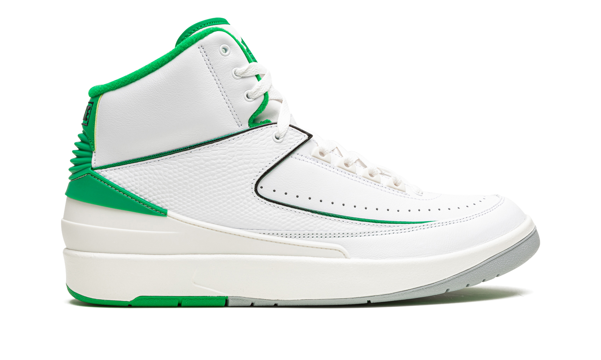 The Air Jordan 2 “Lucky Green” is a classic look for the retro basketball shoe that is loosely inspired by the Boston Celtics. The “Lucky Green” is not officially affiliated with the Celtics, but is nonetheless a nod to the storied basketball team as it features its white and green team uniform colors on its design. The Jordan 2 “Lucky Green” features a white leather base with tonal textured leather overlays. Lucky Green accenting can be found on the heel counter, interior, and on the “Wings” branding on the tongue. A cream midsole gives the shoe a vintage look. Release date: February 3, 2023 Lucky Green