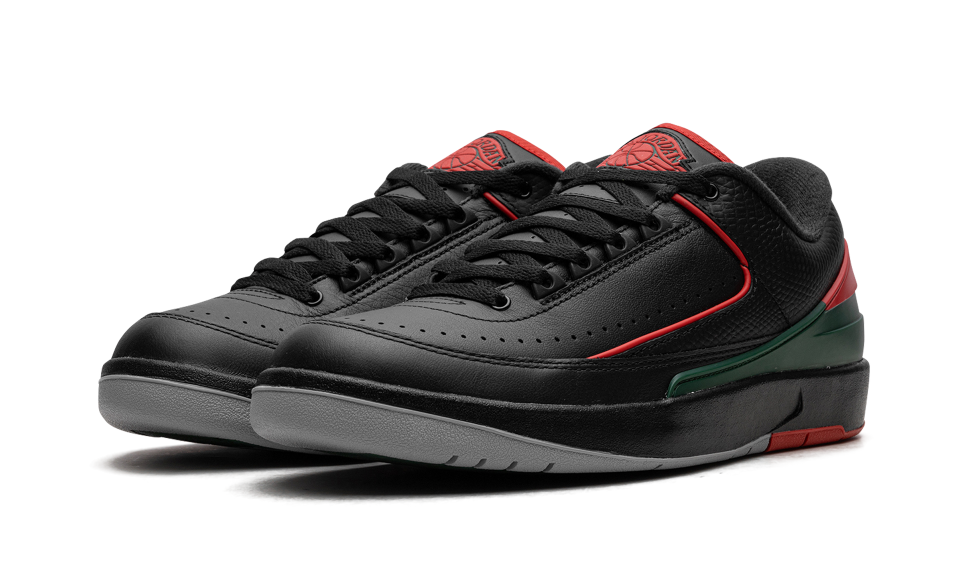 The Air Jordan 2 Low “Christmas” is a colorway of Michael Jordan’s second signature shoe inspired by the wintertime holiday. Also said to be inspired by the Jordan 2’s original “Made in Italy” roots, the “Christmas” colorway has a black, red, and green color scheme that nods to both Christmas colors and the colors found on the Italian flag. The upper features a black leather construction with red piping on the mid-panel. A red and green heel counter and a “Wings” logo on the tongue add to the Christmas-inspired look. Underfoot, a black midsole and a grey and red outsole put the finishing touches on the design. Release date: December 16, 2023 Christmas