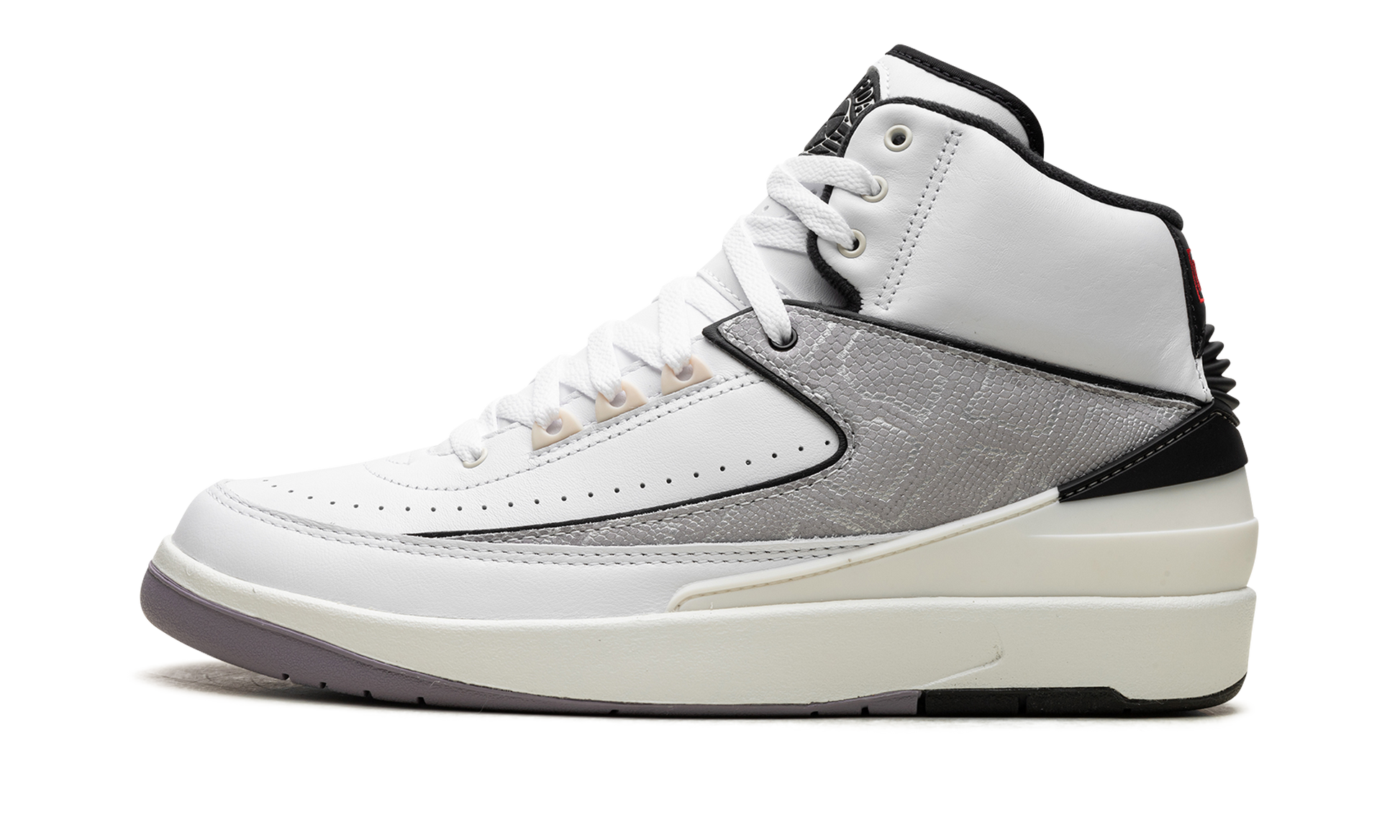 The Air Jordan 2 "Python" is the colorway of Michael Jordan’s second signature shoe inspired by the Nike Air Python. Debuted in 1987 and said to be a combination of the Nike Air Force 2 and Jordan 2, the Air Python is known for its faux lizard skin material on its design, which is the material that inspires the reptilian detailing on the Jordan 2 “Python.” The upper has a white leather construction and features a grey snakeskin pattern on the mid-panel overlay. An old school “Wings” logo is seen on the tongue, while a red “Nike” logo is embroidered on the heel. Underfoot, a Sail midsole sits on top a Cement Grey rubber outsole, completing the look. Release date: January 20, 2024 Python