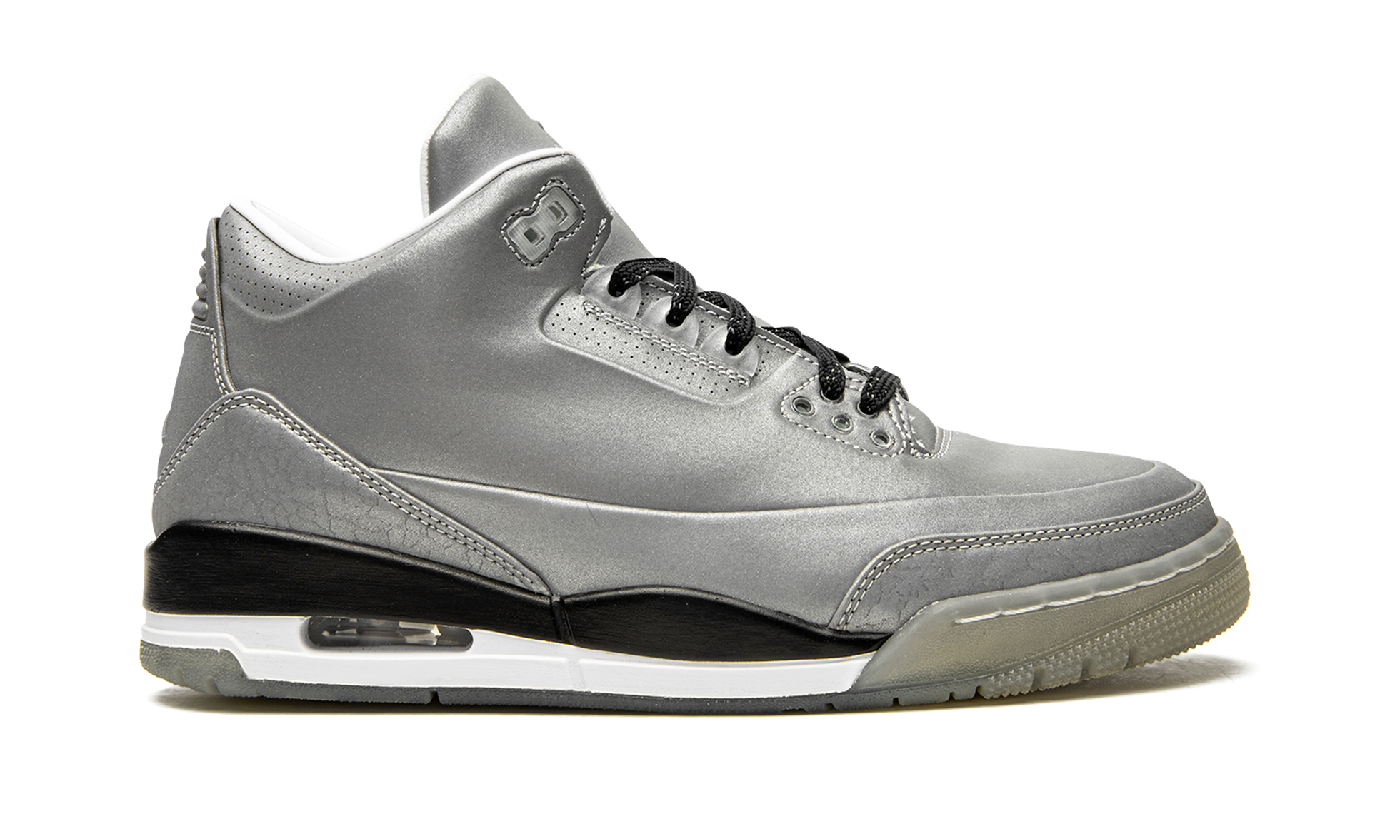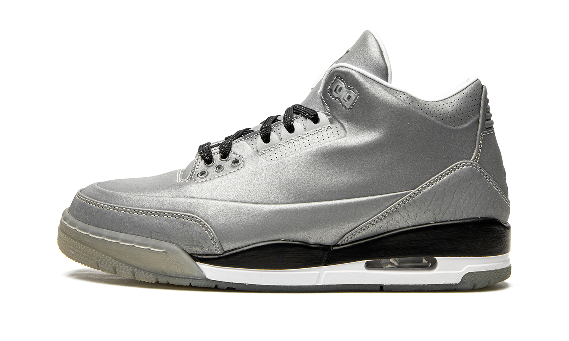 Combining the silhouette of the Air Jordan 3 with a signature material of the Air Jordan 5, the Air Jordan 5Lab3 is birthed. Taking the iconic reflective tongue of the Air Jordan 5, the Air Jordan 3 is covered completely in the reflective metallic silver material. A limited 2014 release. Silver