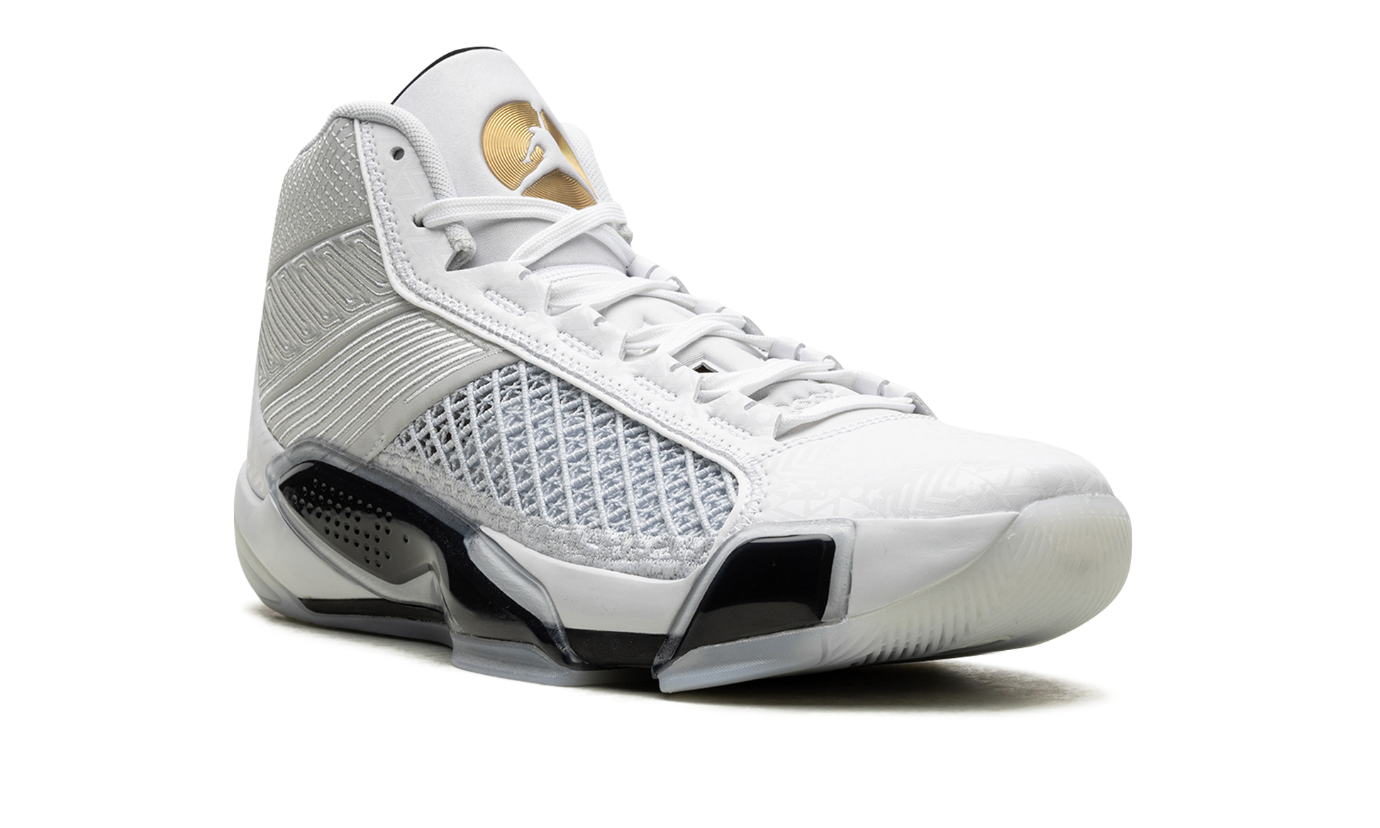 The Air Jordan 38 “FIBA” is a colorway of the performance basketball shoe that celebrates basketball’s global impact. FIBA, short for Federal International Basketball Association, inspires this clean colorway of the Jordan 38. The colorway is complete with a combination of white leather and mesh. A Metallic Gold backdrop contrasts the white Jumpman logo on the tongue. A graphic of the FIBA World Cup Trophy is seen on the underside of the tongue. Release date: September 7, 2023 FIBA