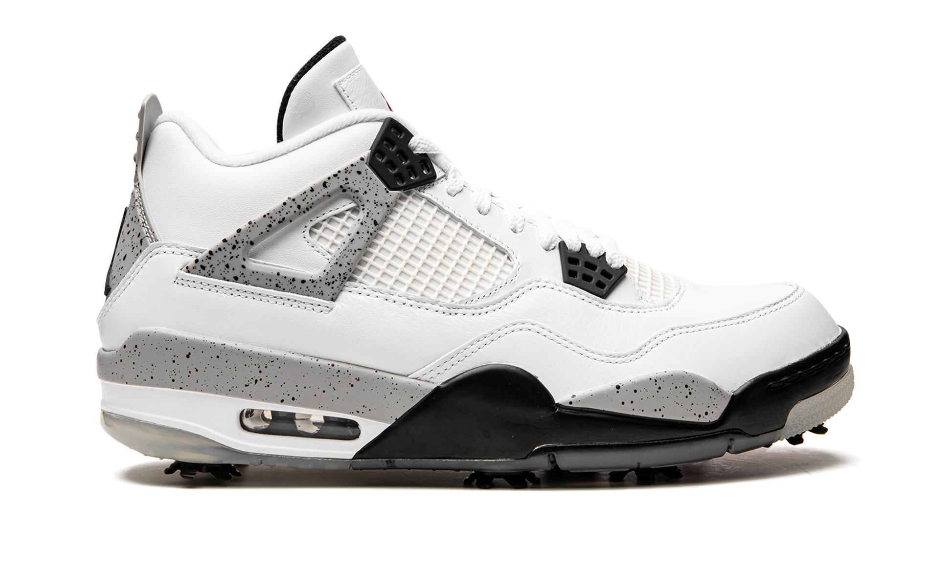 Jordan has once again taken a classic shoe and retrofitted it to suit the golf course with the Air Jordan 4 Golf “White Cement.” This sneaker arrives in the original and iconic colorway of White, Fire Red, Cement Grey and Black.” The sole has been modified with cleats instead of the traditional basketball tooling to bring classic style to the golf course. White Cement