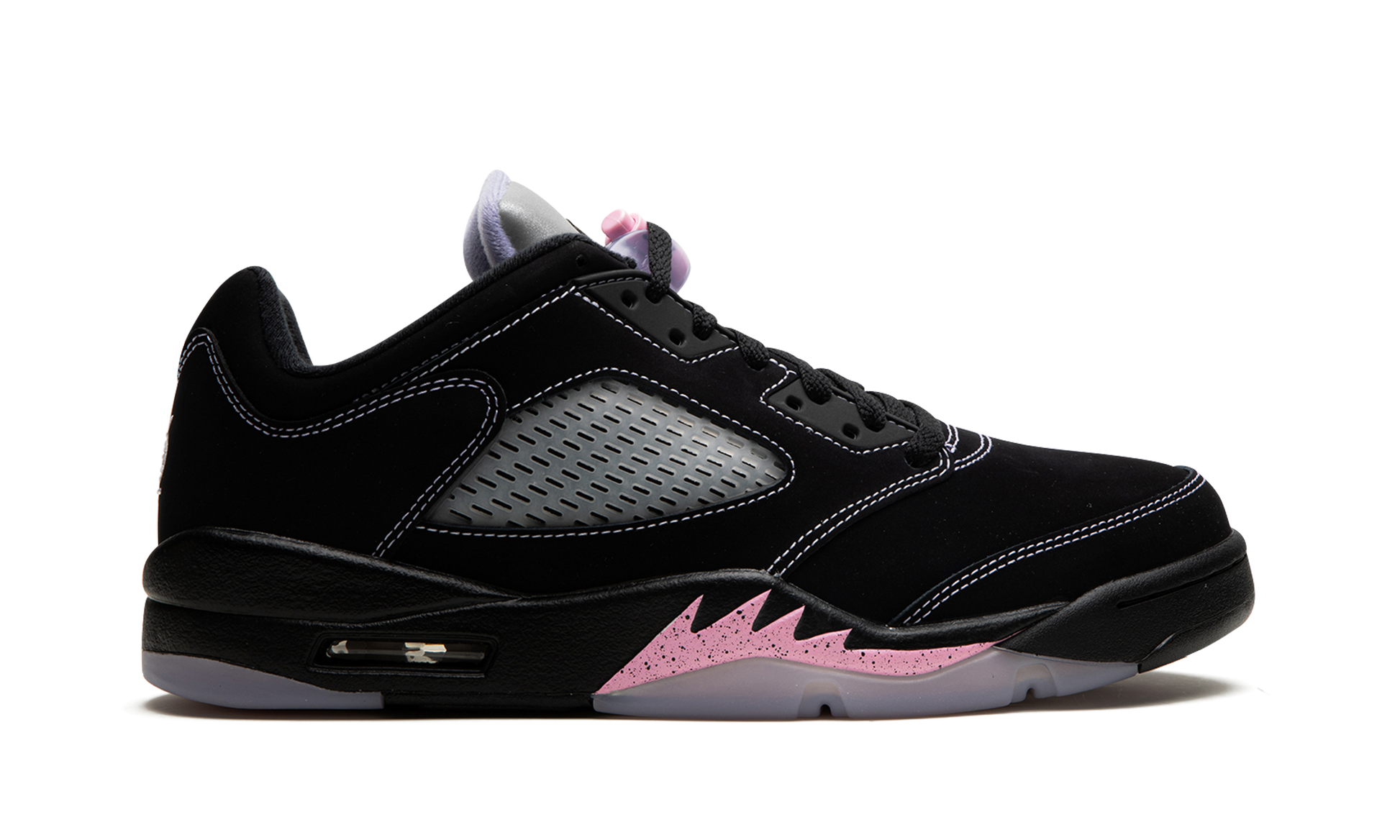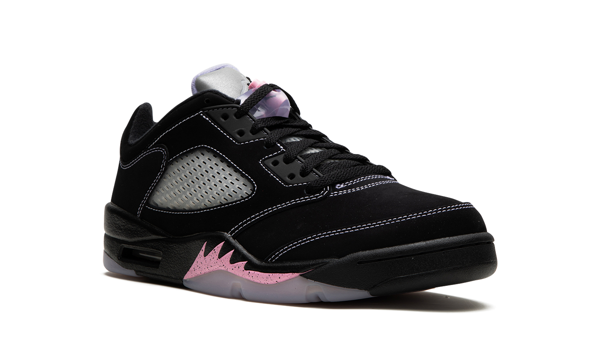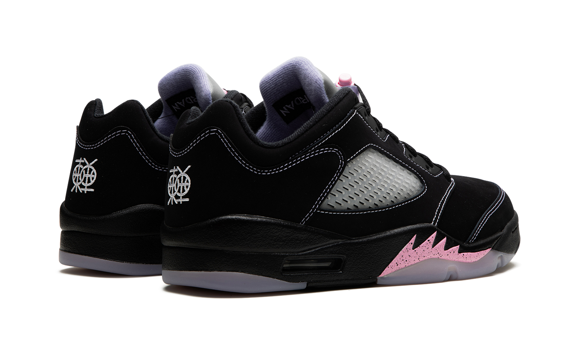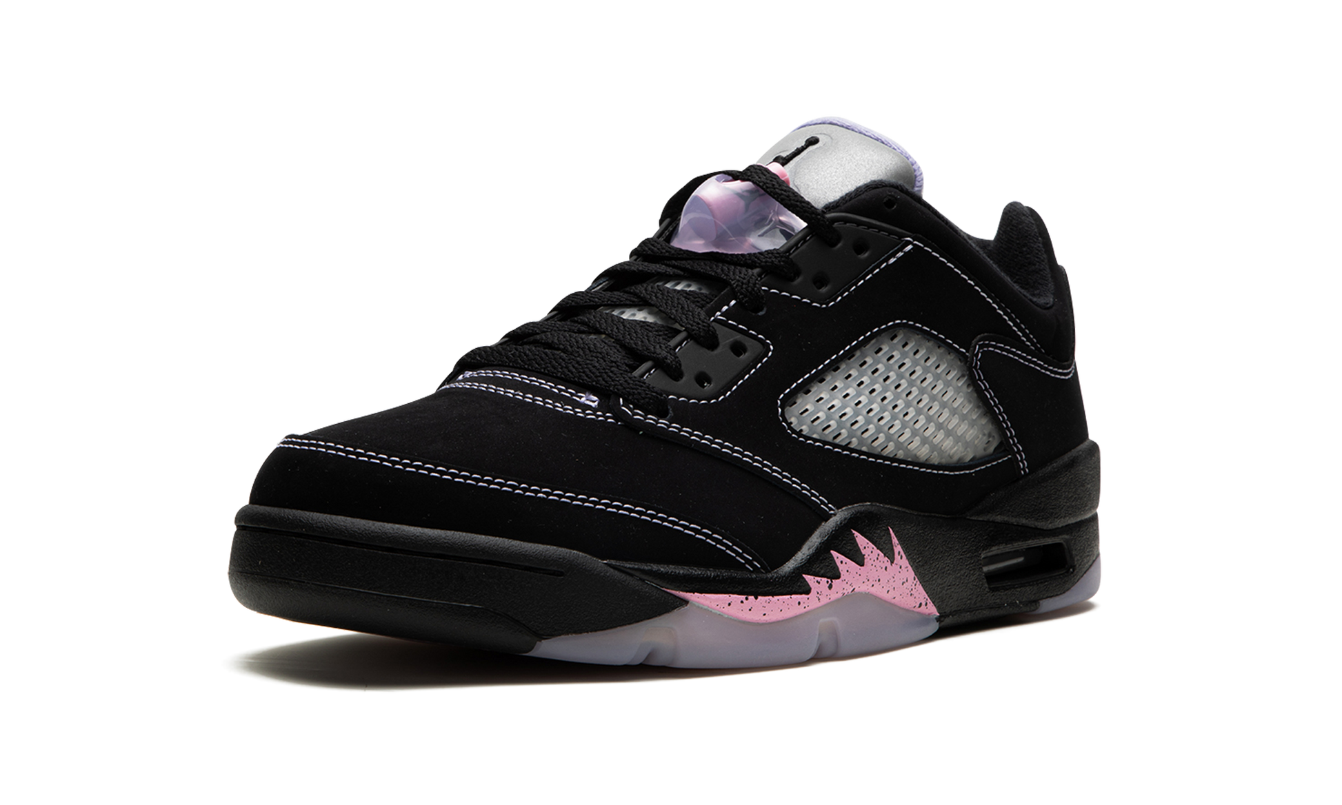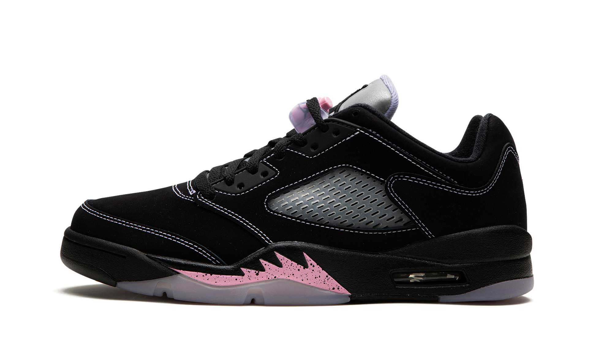 The Air Jordan 5 Low "Dongdan" is a colorway of the retro basketball shoe inspired by the Chinese streetball tournament of the same name that occurs annually in Beijing, China. From a greater collection of “Dongdan” colorways, the Jordan 5 Low seen here features a black synthetic nubuck construction with translucent netting on the sides and on the tongue. The Metallic Silver tongue is reflective and features a classic Jumpman logo. Another Jumpman can be seen on the heel. Pink Rise-colored shark tooth detailing on the forefoot of the midsole completes the look. Release date: August 3, 2023 Dongdan