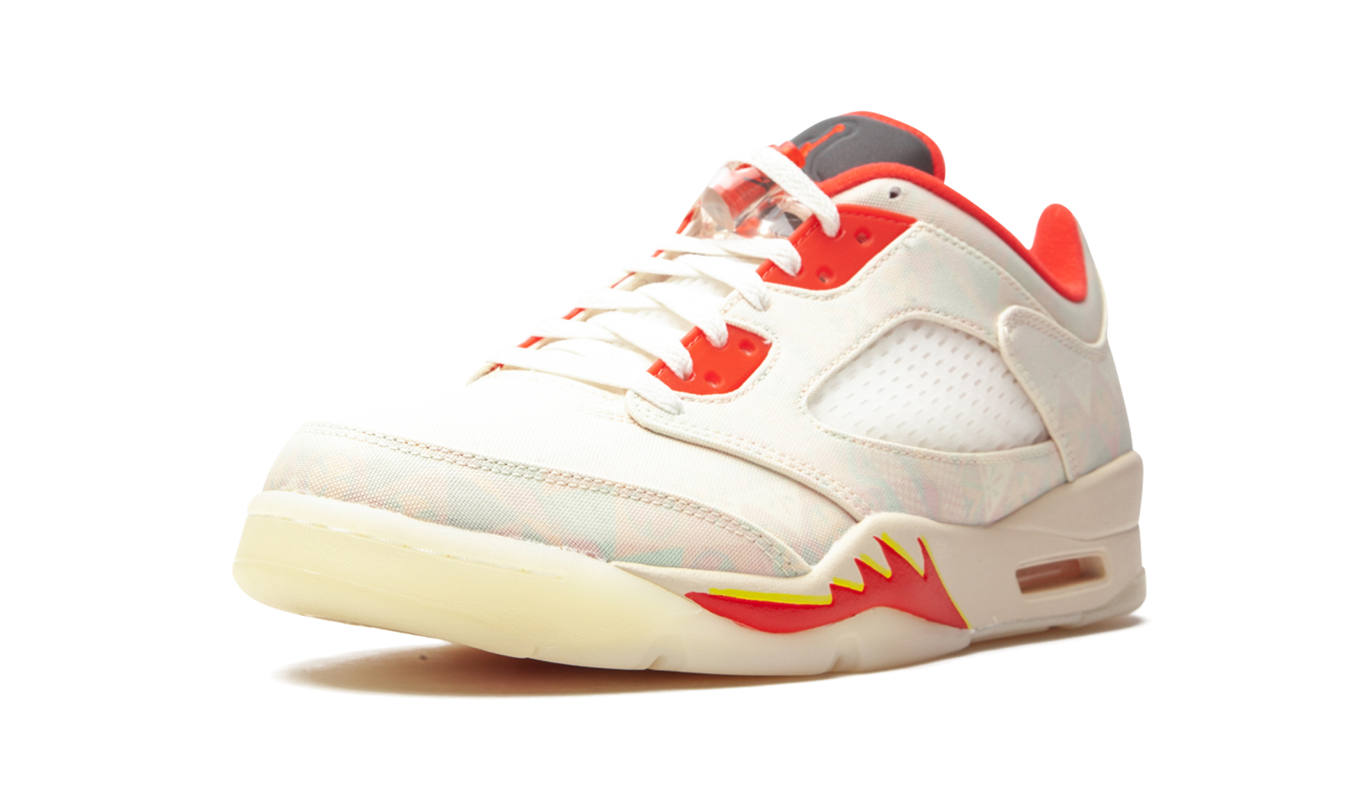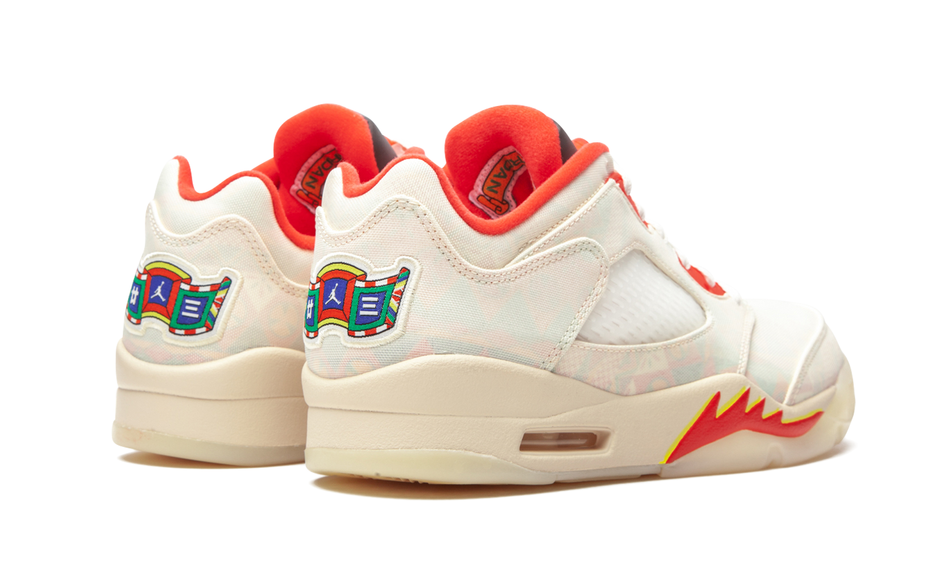 The Air Jordan 5 Low “Chinese New Year 2021” is a special makeup of Michael Jordan’s fifth signature shoe for the traditional holiday. Released by Jordan Brand in January 2021, the “Chinese New Year” colorway appears on the Air Jordan 5 Low for the first time and, as you can see, the results are consistent with all of the great “Chinese New Years” designs created by Nike in years past. When worn away, the Sail canvas upper reveals a hidden colorway for a completely new vibe. Blazing Chile Red accents can be found on the upper and lower eyelet panels as well as on the sock liner and on the Jumpman embroidery on the black reflective tongue. The phrase “ACTION” can be seen layered beneath the translucent white netting on the medial side of the shoe—the lateral side displays the traditional Jordan 5 look. On the back, Jordan Brand places Chinese New Year-specific embroidery in place of Jumpman branding. A small clear Air window in the heel of the vintage inspired cream midsole finishes off the look. Release date: January 23, 2021. Chinese New Year 2021