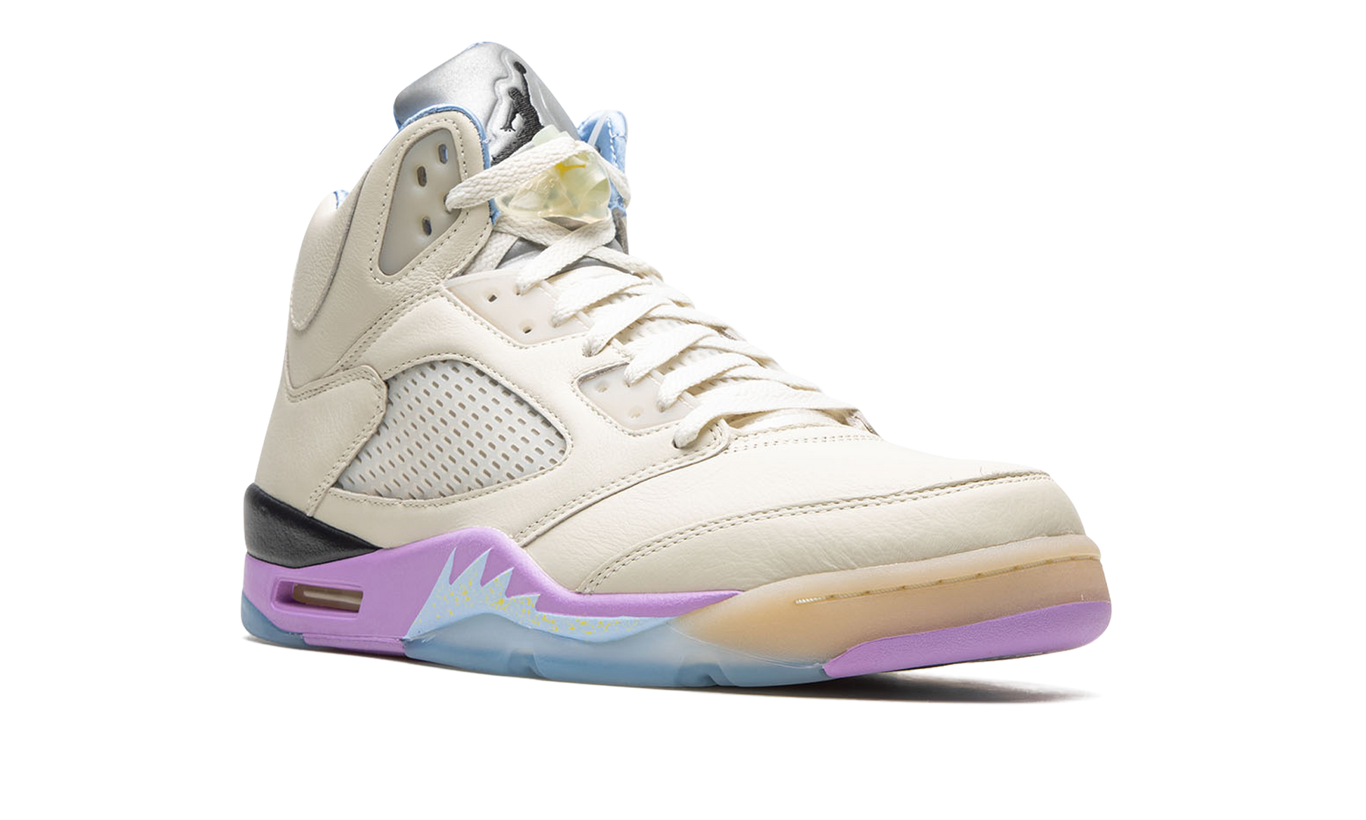 The DJ Khaled x Air Jordan 5 “We the Best - Sail” is one of several popular colorways included in the special collaboration by the famous hip-hop producer on Michael Jordan’s fifth signature shoe. DJ Khaled’s collection of pastel-colored Jordan 5s is inspired by Miami and warm weather, as the shoe’s colorful accents undoubtedly call to mind both the Florida city and its climate. The shoe is complete with a Sail-colored leather construction with translucent netting on the tongue and mid-panel. Yellow “We the Best” branding inspired by Khaled’s signature catchphrase is embroidered on the heel of the left shoe while the Jordan 5’s original “Nike Air” logo is embroidered on the heel of the right shoe. The words “Keep” and “Going” are found on the underside of the blue quilted tongue tag. Classic Jumpman logo detailing appears on the Metallic Silver reflective tongue. Release date: November 28, 2022 We The Best - Sail