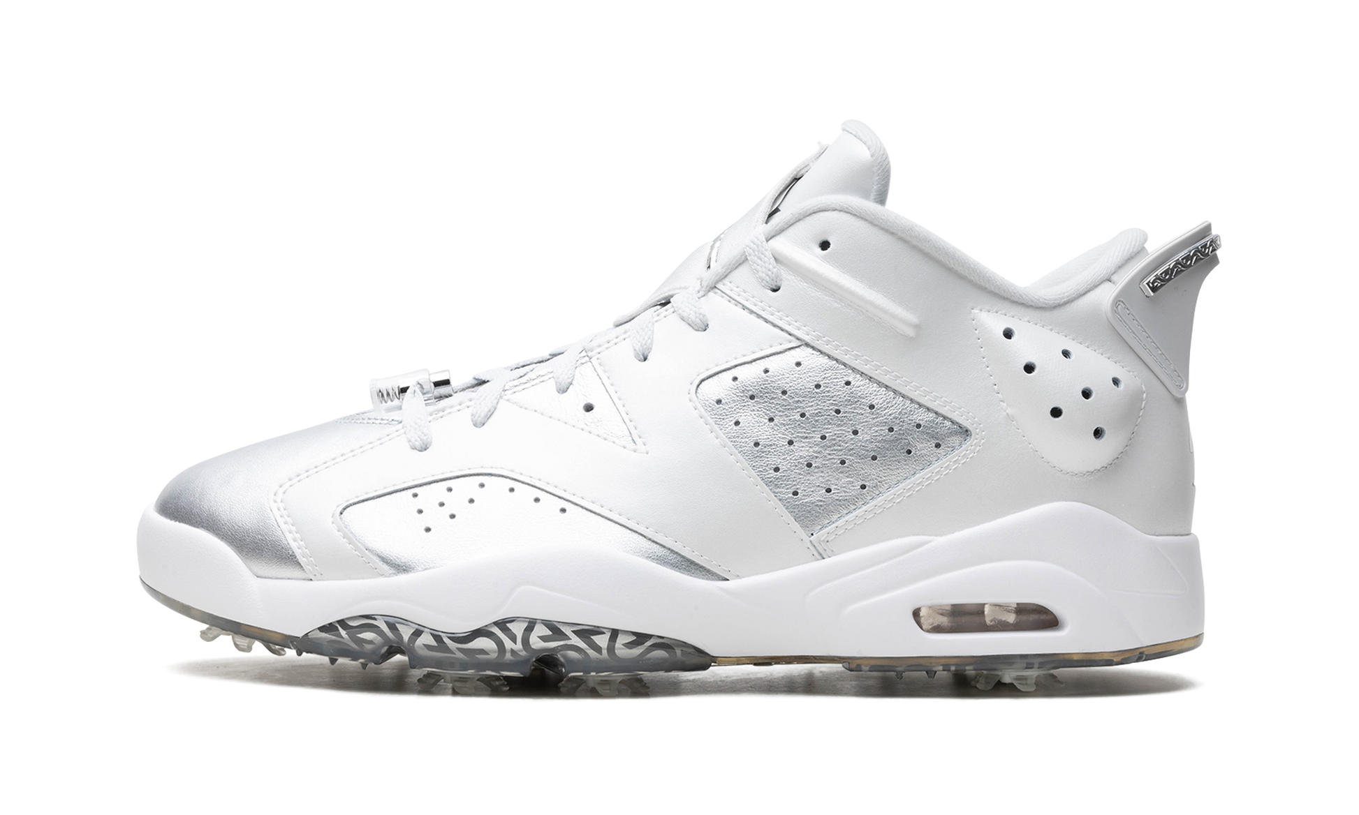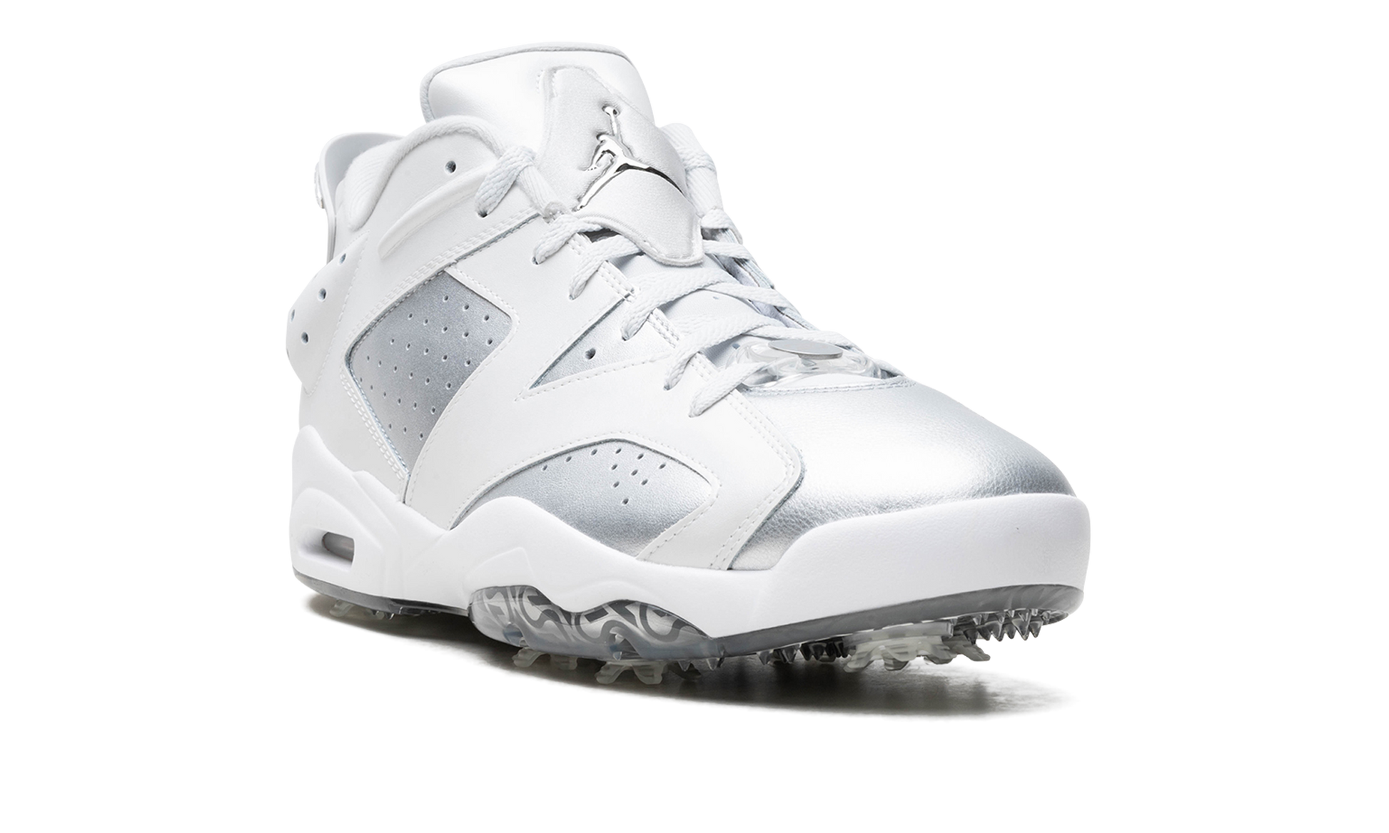 The Air Jordan 6 Low Golf "Gift Giving" is a colorway of the alternate version of the retro basketball shoe made for the golf course with an eye-catching, silver-based look. The “Gift Giving” features a Metallic Silver leather base contrasted with Photon Dust-colored leather overlays. A Metallic Silver Jumpman emblem is found on the tongue while a unique “23” logo is stamped on the heel. Underfoot, translucent spikes provide grip on a golf course . Release date: November 17, 2023 Gift Giving