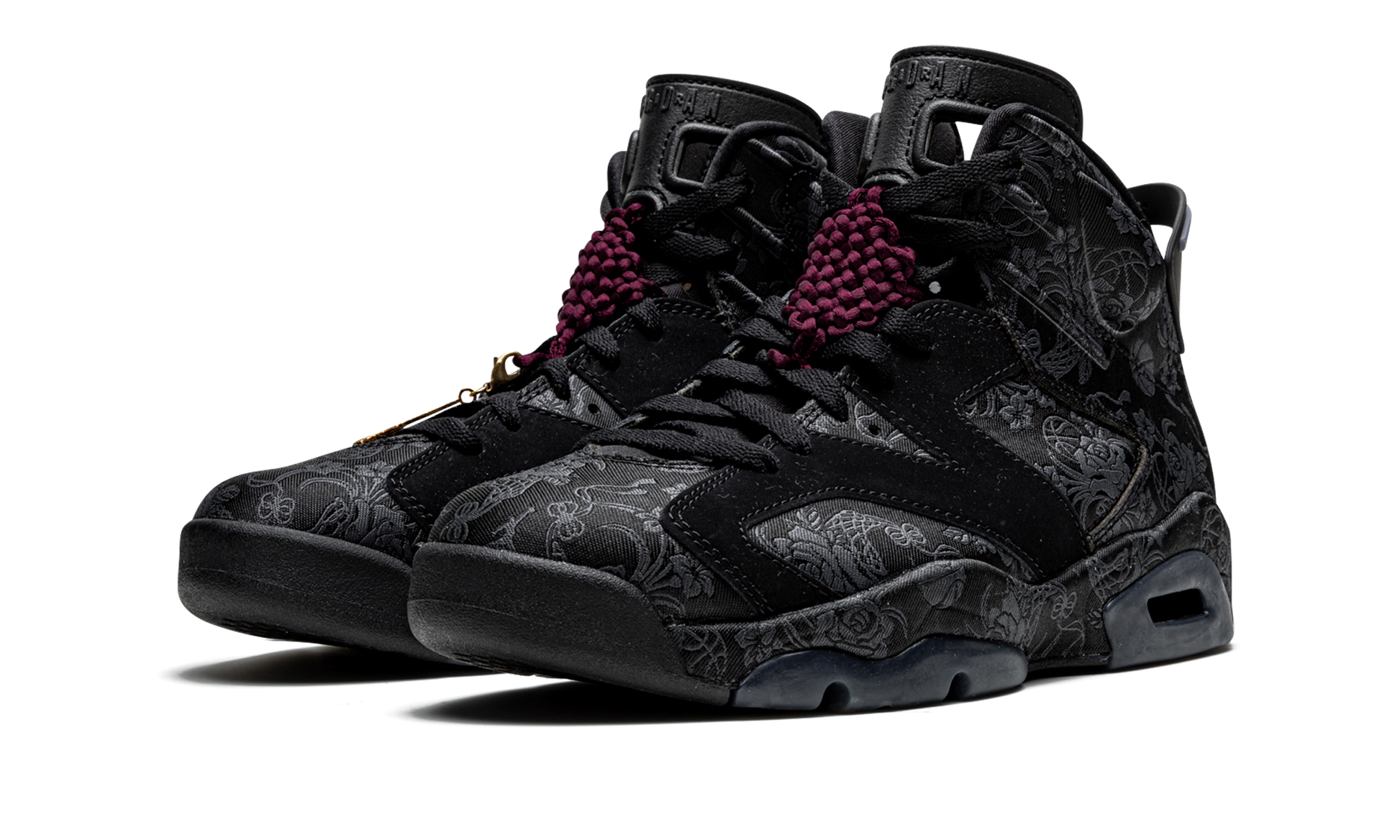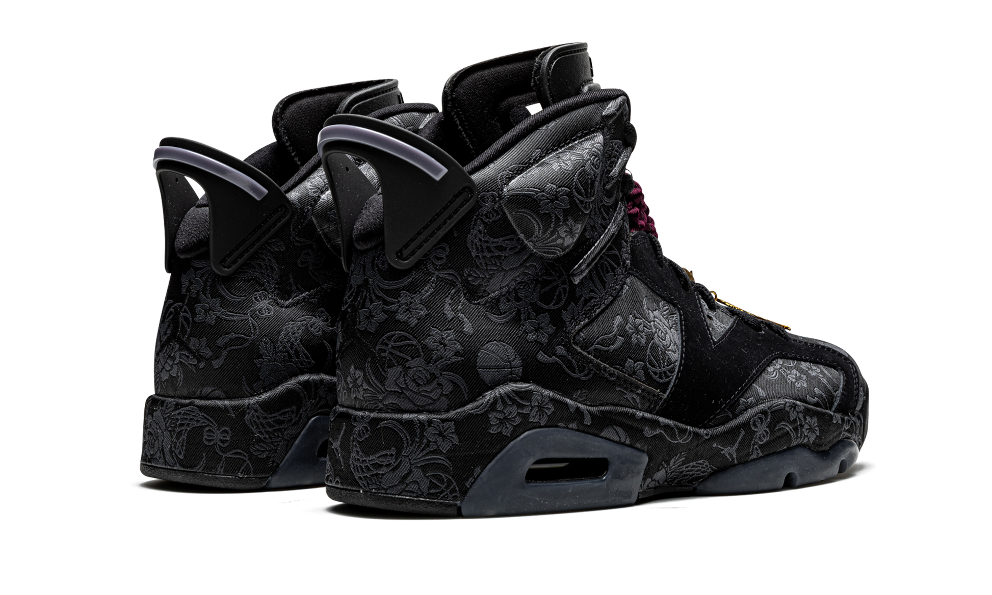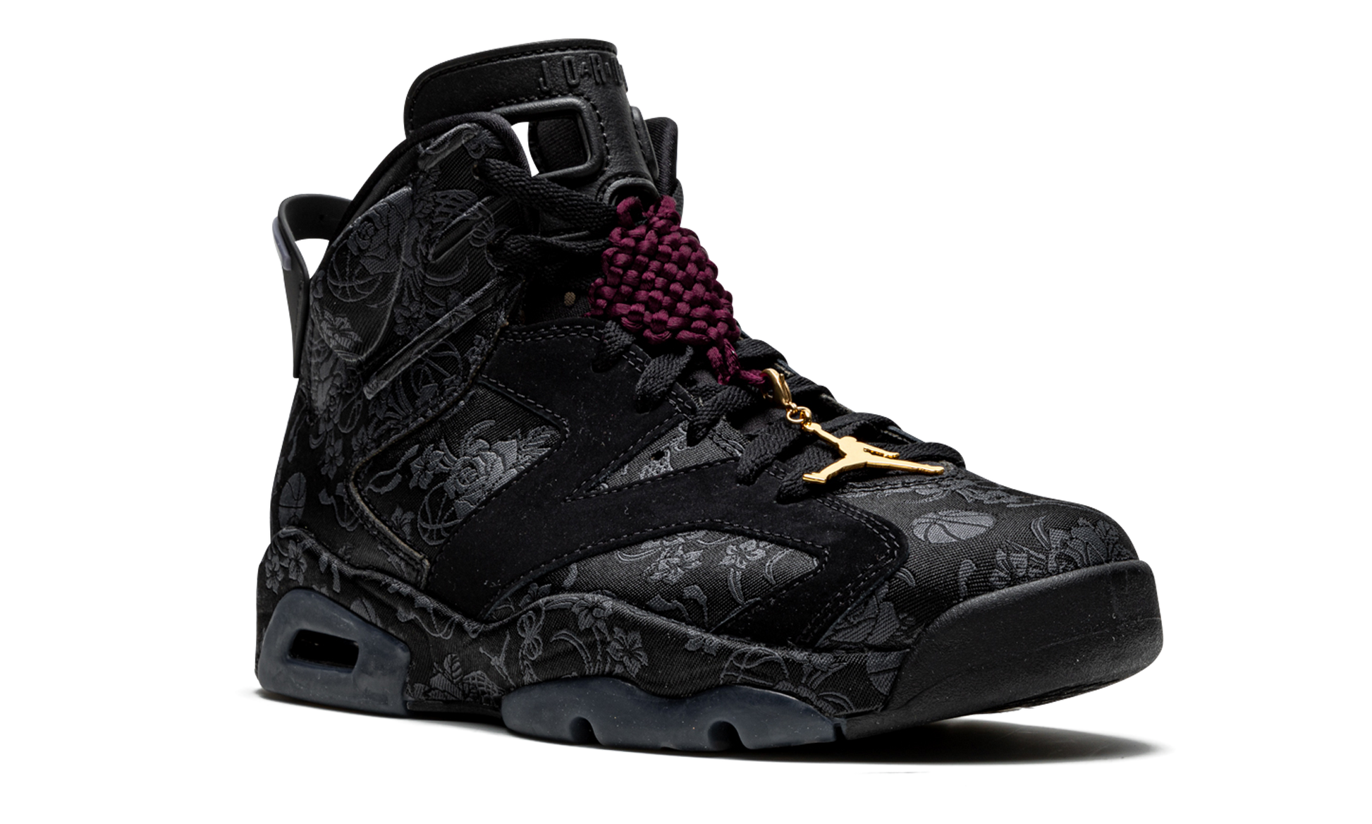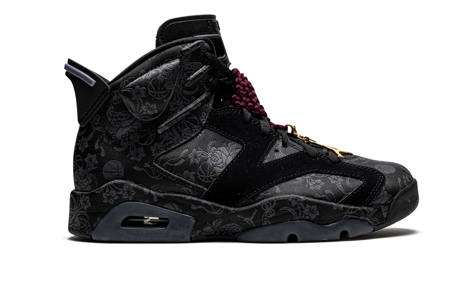 he Women’s Air Jordan 6 “Singles Day” is a women’s-exclusive of Michael Jordan’s sixth signature shoe that celebrates the unofficial holiday of single people. Originating in China, Singles’ Day occurs annually on November 11 and has become a go-to theme for Jordan Brand over the years. The Jordan 6 “Singles Day” features a luxurious floral motif baked into its all-black upholstered design. Contrasting black synthetic nubuck overlays appear on the forefoot, mid-panel, and eyelets to balance the ornate look. Other details include a woven ruby red lace overlay, a Metallic Gold Jumpman hang tag, and a black lace lock with tonal Jumpman detailing. The aforementioned floral fabric transitions from the upper to the midsole, and a semi-translucent border surrounds the visible Air unit in the heel. Release date: November 25, 2020. Singles Day