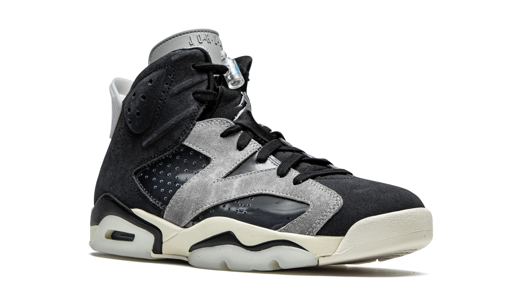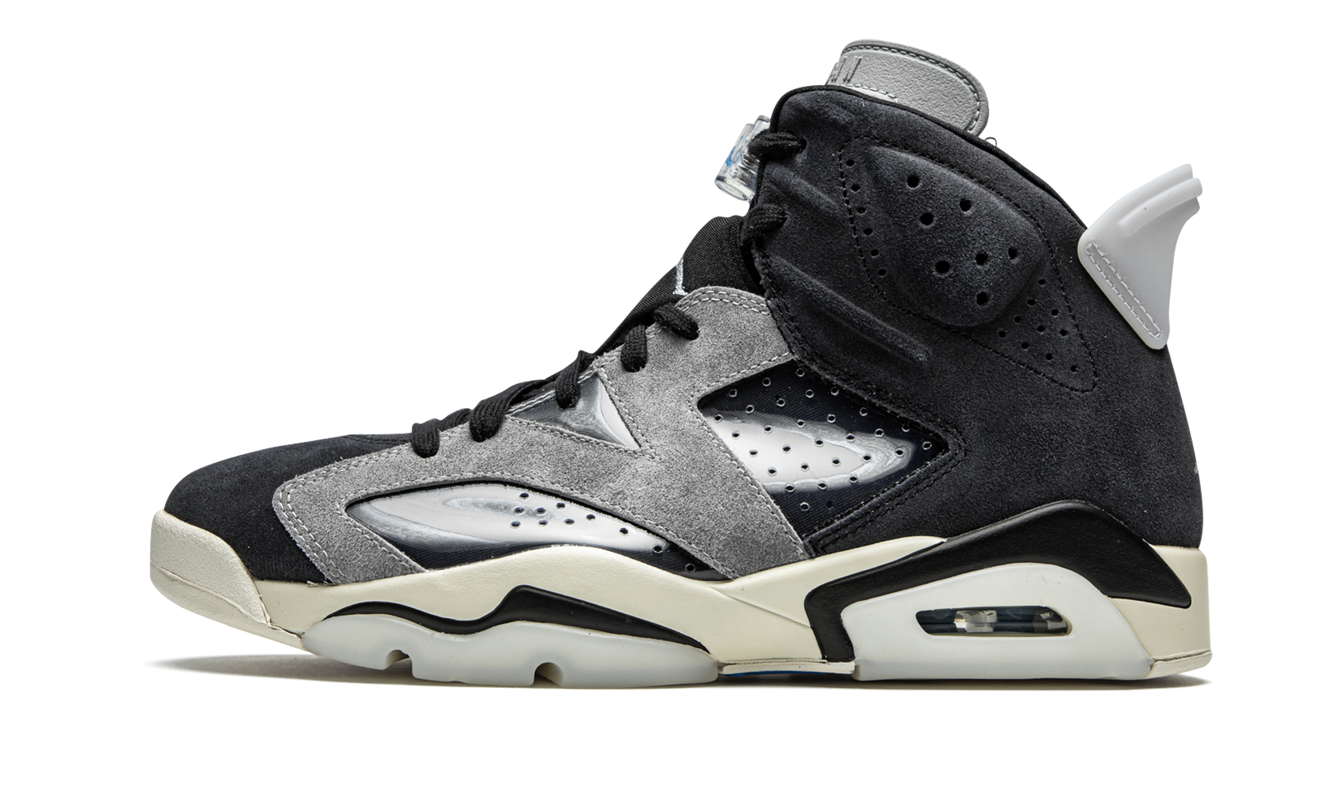 The Women’s Air Jordan 6 "Tech Chrome" AKA “Smoke Grey” is the women’s sizing of Michael Jordan’s sixth signature model in a neutral colorway for unlimited versatility. Reimagined by Jordan Brand for its Fall 2020 campaign, this “Tech Chrome” Jordan 6 is another lifestyle-focused shoe that appeals to fans of His Airness, as well as those who simply appreciate the classic styling of Air Jordans. The upper displays a mixture of colors and materials, including a Light Smoke Grey suede overlay atop the shiny black perforated leather mid-panel. Charcoal suede dots the toe, collar, and heel. A white "spoiler" heel tab and tonal Jumpman detailing on the neutral colored nylon tongue add to the shadowy aesthetic. Inspirational slogans like “Be Kind,” “Embrace Uniqueness,” and “Spread Love” are printed on the sockliner. The visible Air window in the heel is surrounded by translucent molding for a classic yet modern appearance. Release date: September 24, 2020. Tech Chrome