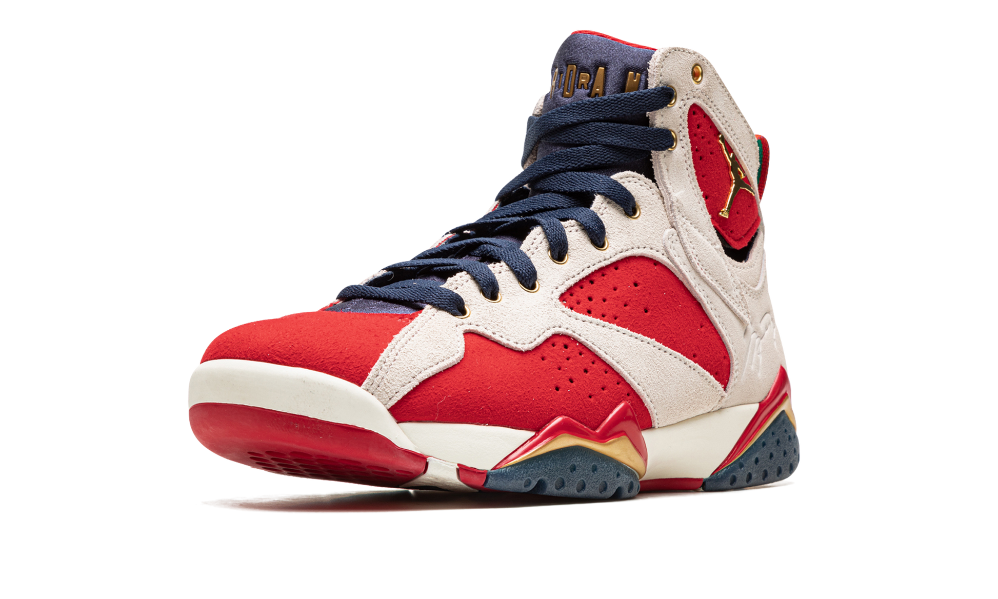 The Trophy Room x Air Jordan 7 “New Sheriff in Town” is a collaboration between Marcus Jordan’s sneaker boutique and Jordan Brand on his father's seventh signature shoe. Dressed in a decidedly “USA” inspired look, the Jordan 7 “New Sheriff in Town” by Marcus Jordan and Trophy Room references the famous quote Michael had for Dream Team teammates Magic Johnson and Larry Bird during a Dream Team practice. It also riffs on the Jordan 7’s “Olympic” colorway that was worn by Jordan on the ‘92 Dream Team. As for its design, the “New Sheriff in Town” features a True Red suede base with cream suede overlays. Michael Jordan’s signature is debossed on the lateral side of the heel and a Metallic Gold Jumpman emblem appears on the collar. Additional gold accenting is found on the Gold Medal-inspired heel tabs. Release date: November 5, 2022 Trophy Room