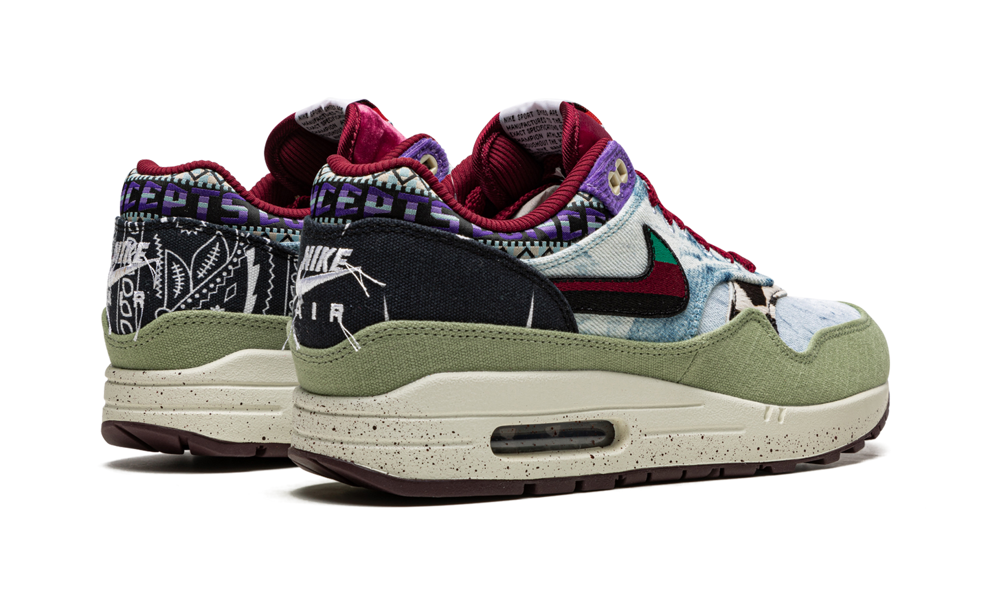 The Concepts x Nike Air Max 1 “Mellow” is a collaboration between the Boston based sneaker boutique and Nike on the vintage running shoe in a colorway inspired by 1960s and 1970s youth culture. The “Mellow” colorway draws favorably from the era’s music festivals, specifically the ‘69 Harlem Cultural Festival, which was headlined by the likes of Stevie Wonder, Nina Simone, and many more. The unique fashion worn by the festival’s headlining acts and concert goers informs the eye-catching bandana, cowhide, denim, and woven materials found on the “Mellow’s” design. Velvet accenting, frayed edges, and a multicolor Swoosh accentuate the shoe’s “flower power” design ethos. Release date: March 5, 2022 Concepts - Mellow